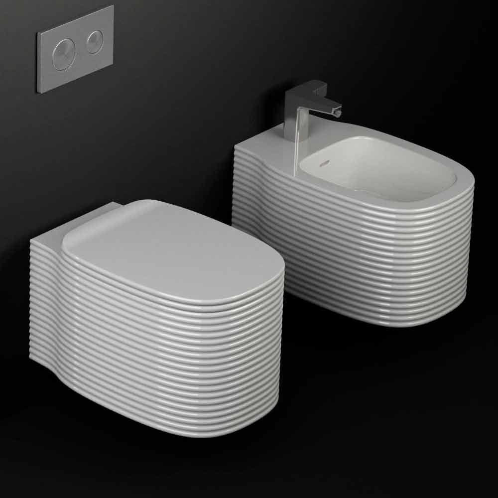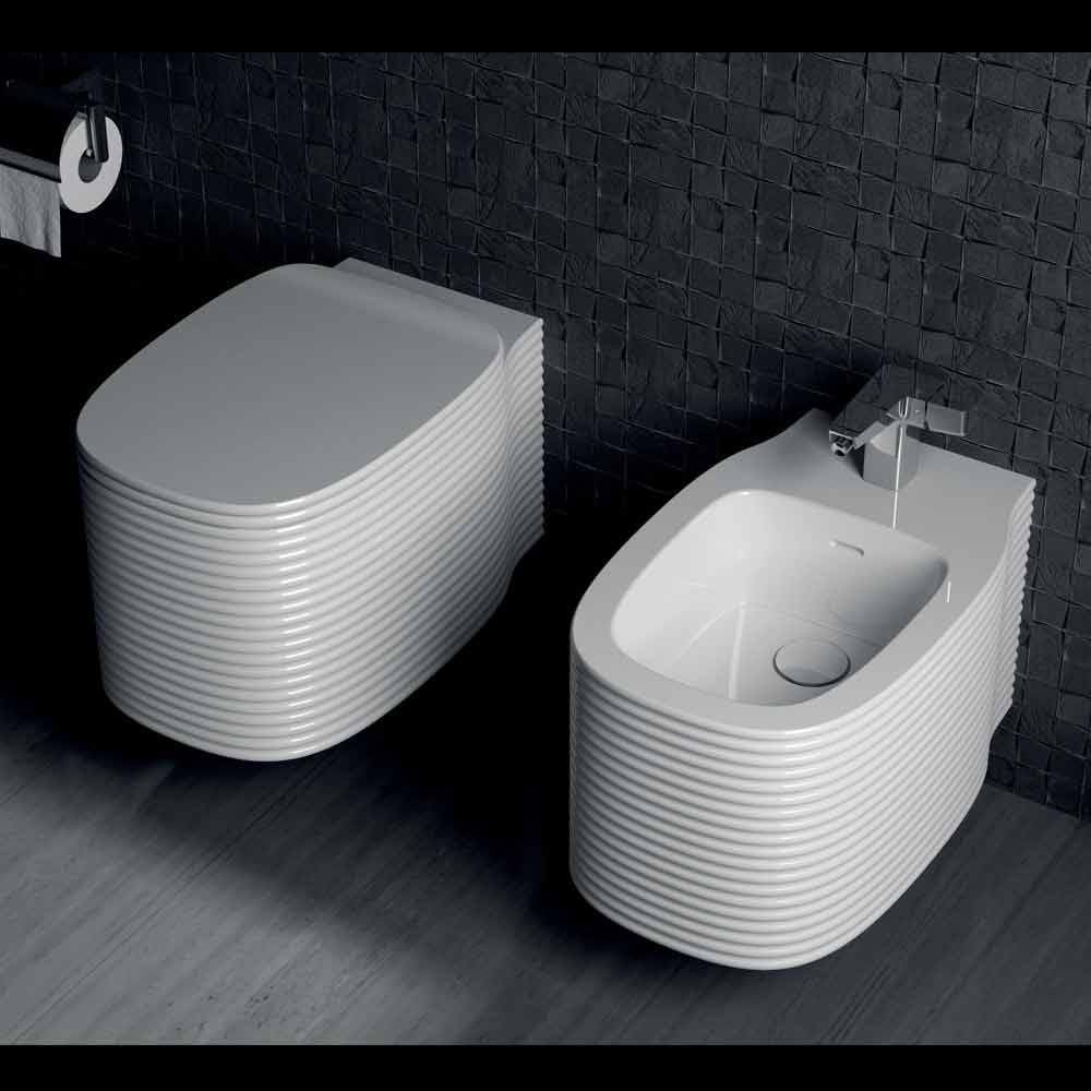 Amleto is a particular suspended vase handmade in Italy in ceramic with soft closing seat in glossy white finish.