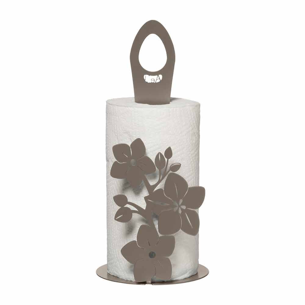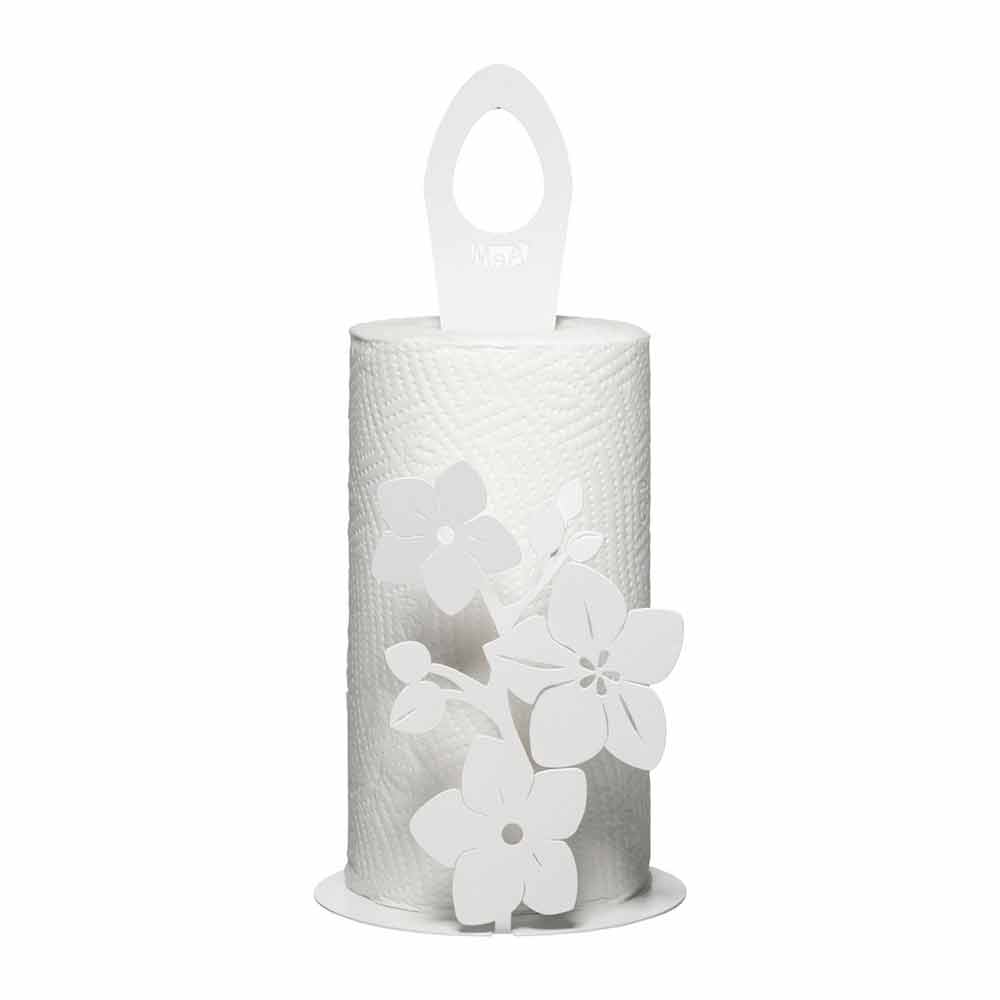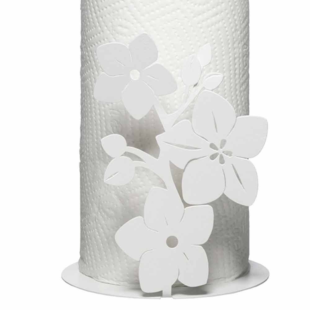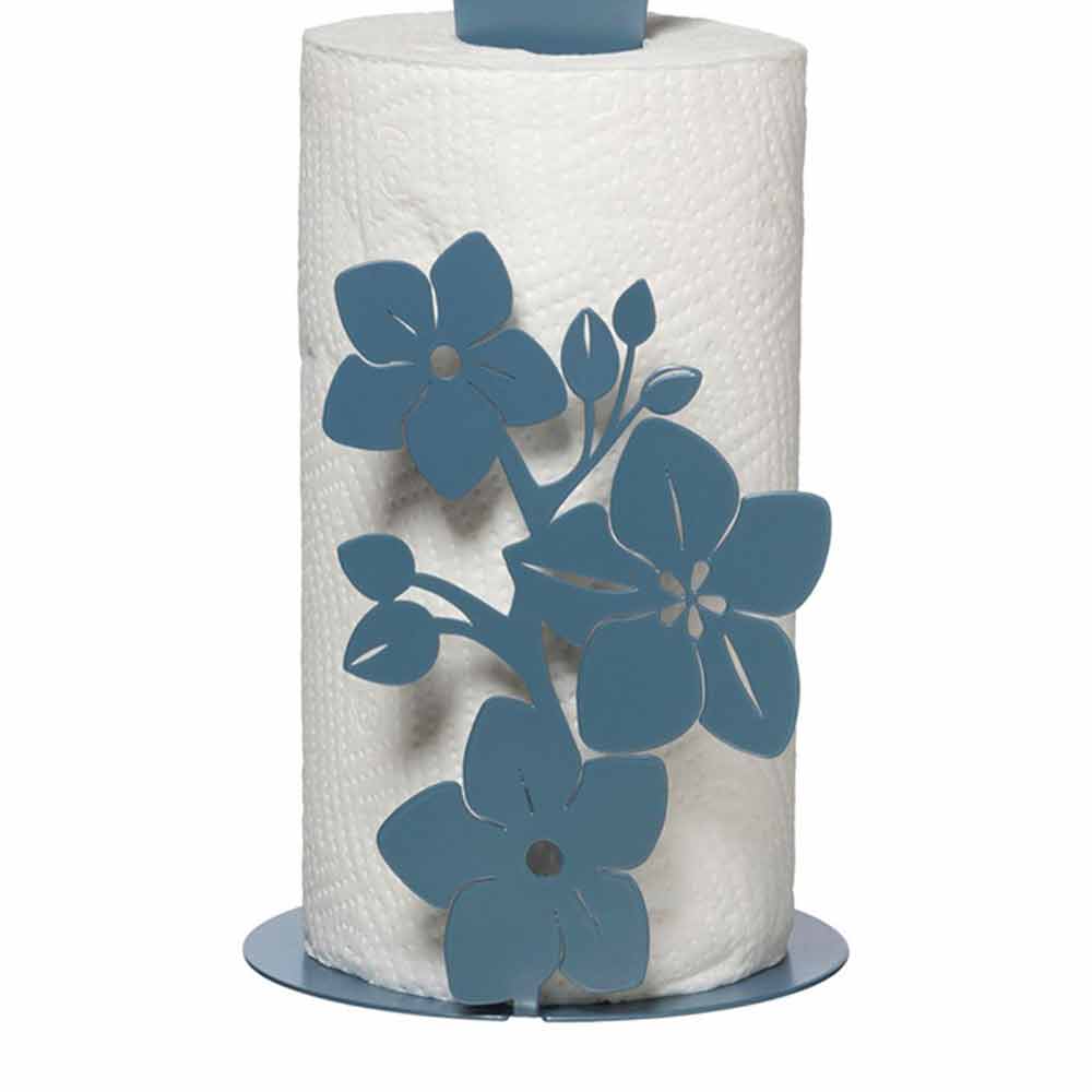 Modern style floral kitchen roll holder in white, mud or blue iron handcrafted in Italy.