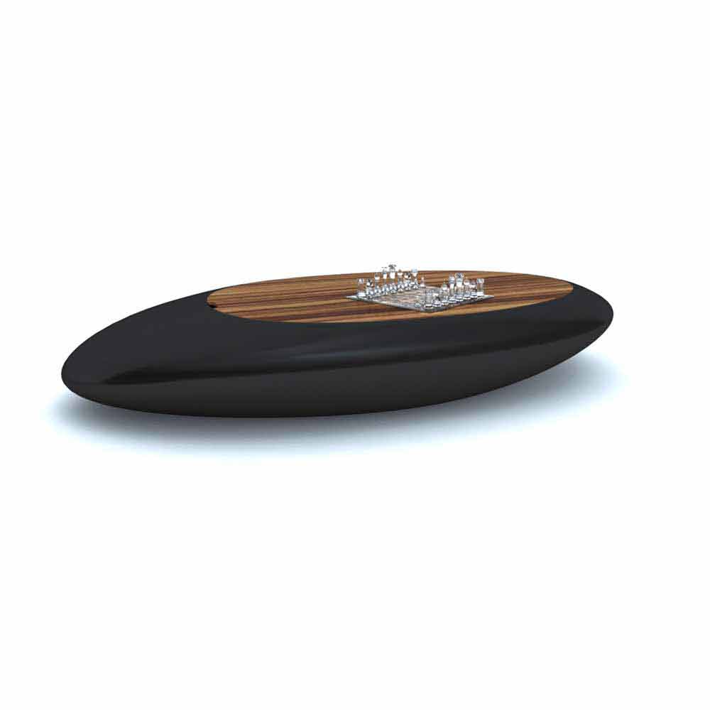 Scenographic coffee table with rounded and tapered shapes, hence the name Drop (drop in English).