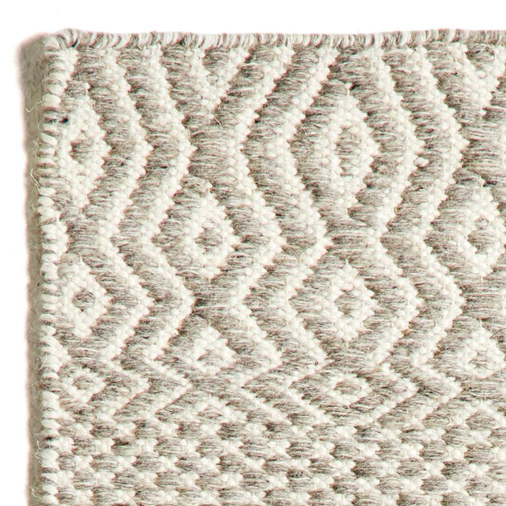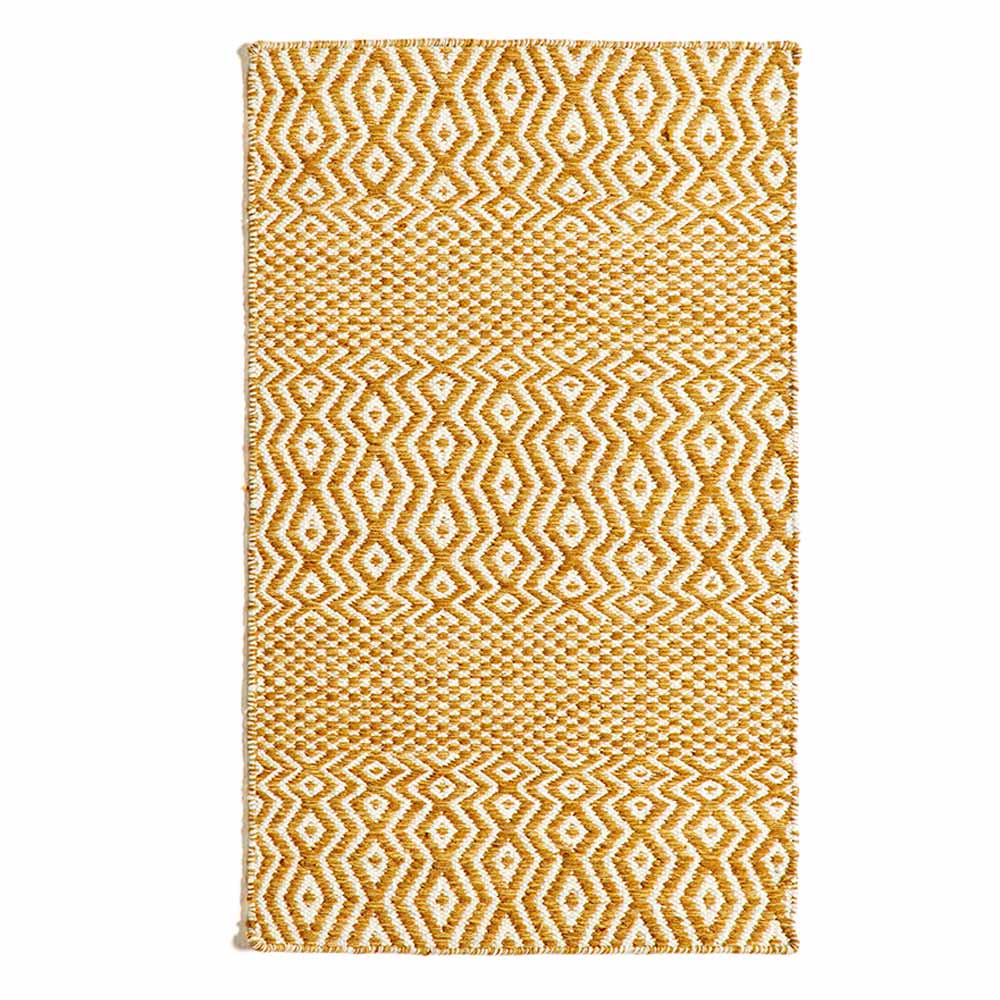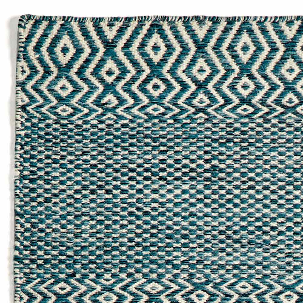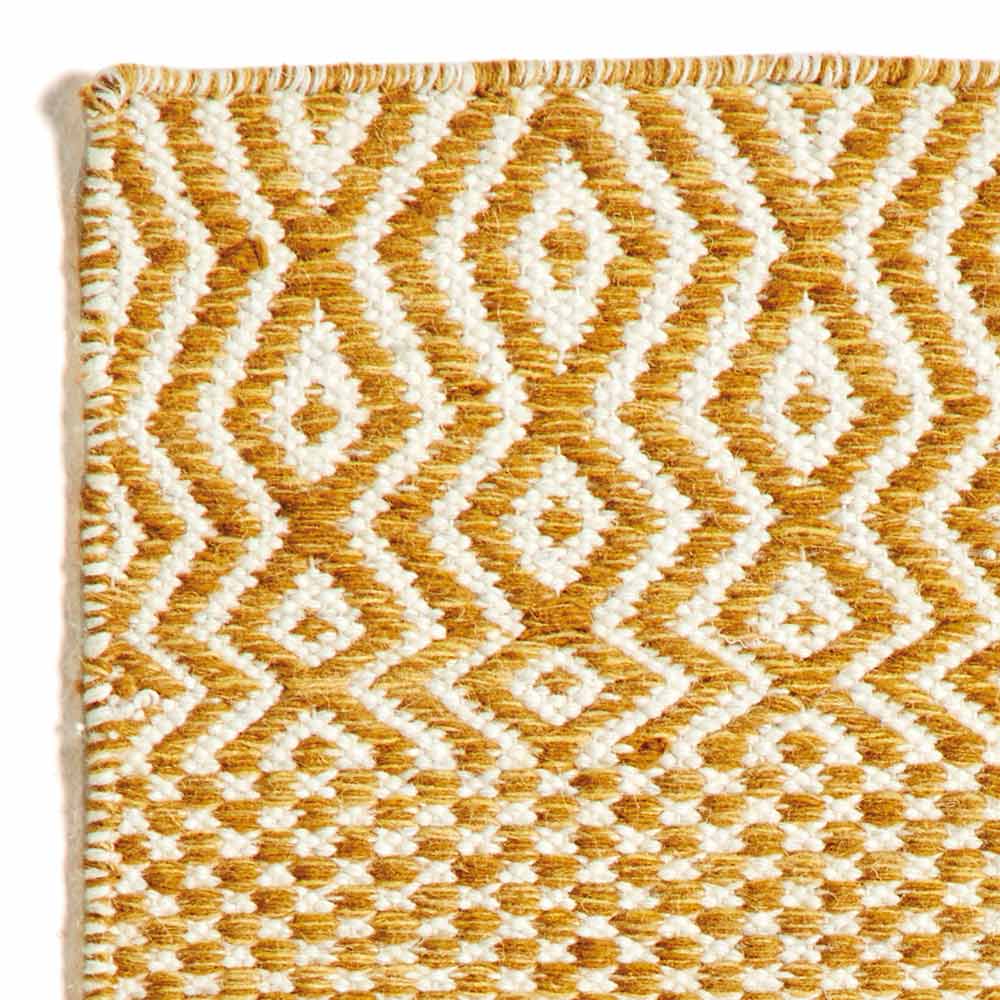 This rug is made of wool and cotton and is handmade by expert weavers on a loom using a manual accessory that allows to obtain the texture that distinguishes it. The product design includes monochromatic stripes that alternate with patterned stripes, which characterize the carpet in particular and make it unique in its kind and ideal for attracting attention in the room. The combination of the colors available with the materials and techniques used allow to obtain a final product of high quality and great visual impact, thus managing to create a unique and comfortable climate within the environment.