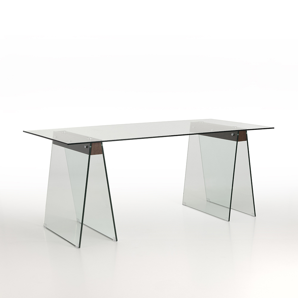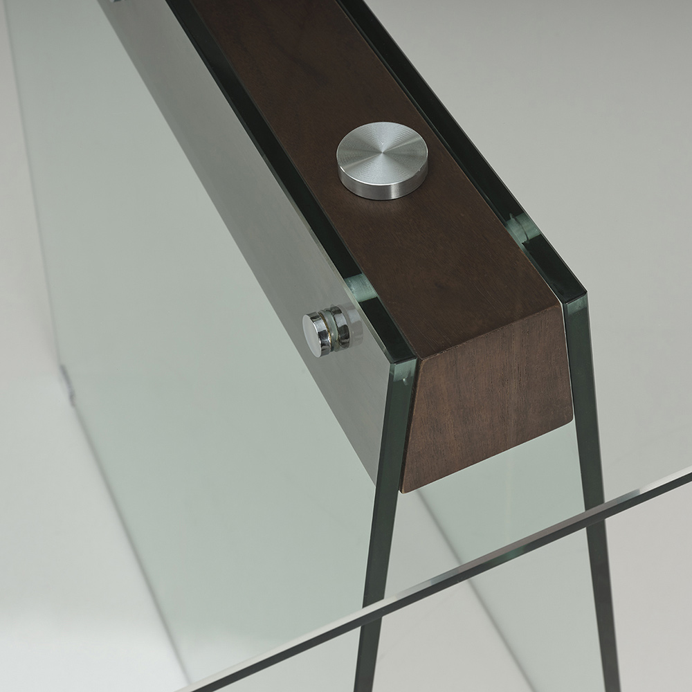 Losanna is a modern-style table featuring clear glass legs and a 12mm-thick clear glass top with walnut-colored MDF inserts. Thanks to the mix of materials, it will be a perfect furnishing accessory for all your rooms.