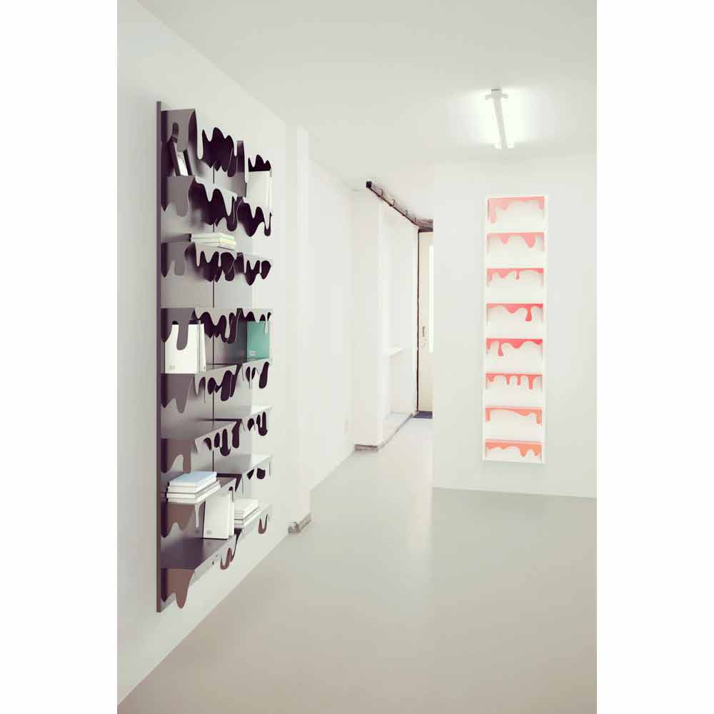 Kolata is an original wall-mounted bookcase made of painted iron.