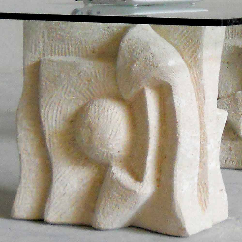 The coffee table Priamo-S is entirely made in Italy. Its base is made of Vicenza natural stone and it has been hand-carved from the original stone block. The table top is made of float crystal (12 mm thickness) which is layd on the base.