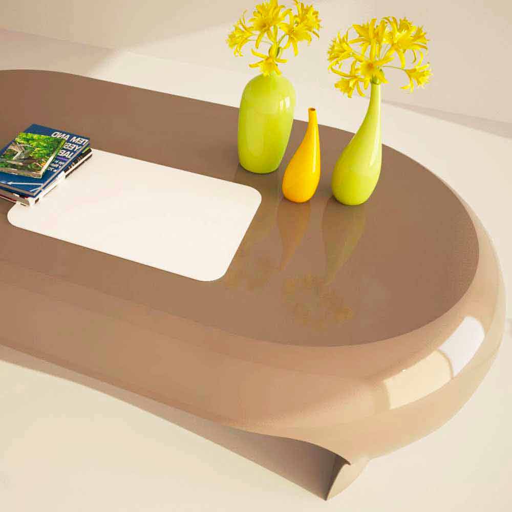Design desk. Material: Solid Surface; Original desk, with rounded shapes and an attractive design, to make the office or work space both productive and relaxing. Furthermore, this design object can also be interpreted as a dining table. Glossy lacquered finish. Color: Beiges