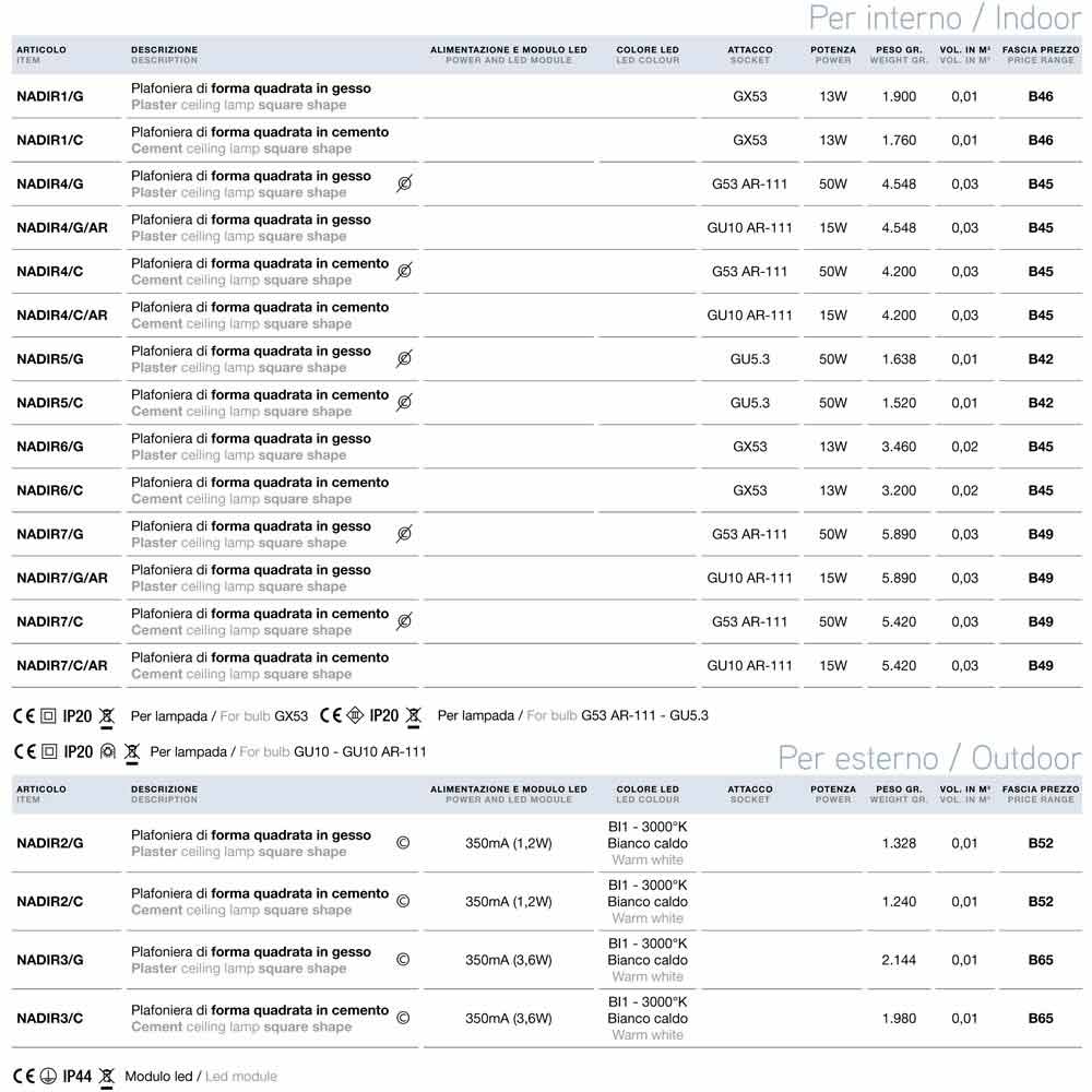 < Modern design outdoor ceiling light Nadir3 by Aldo Bernardi, available in concrete or plaster version.