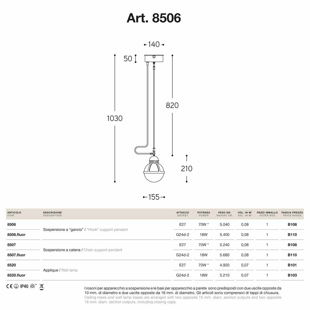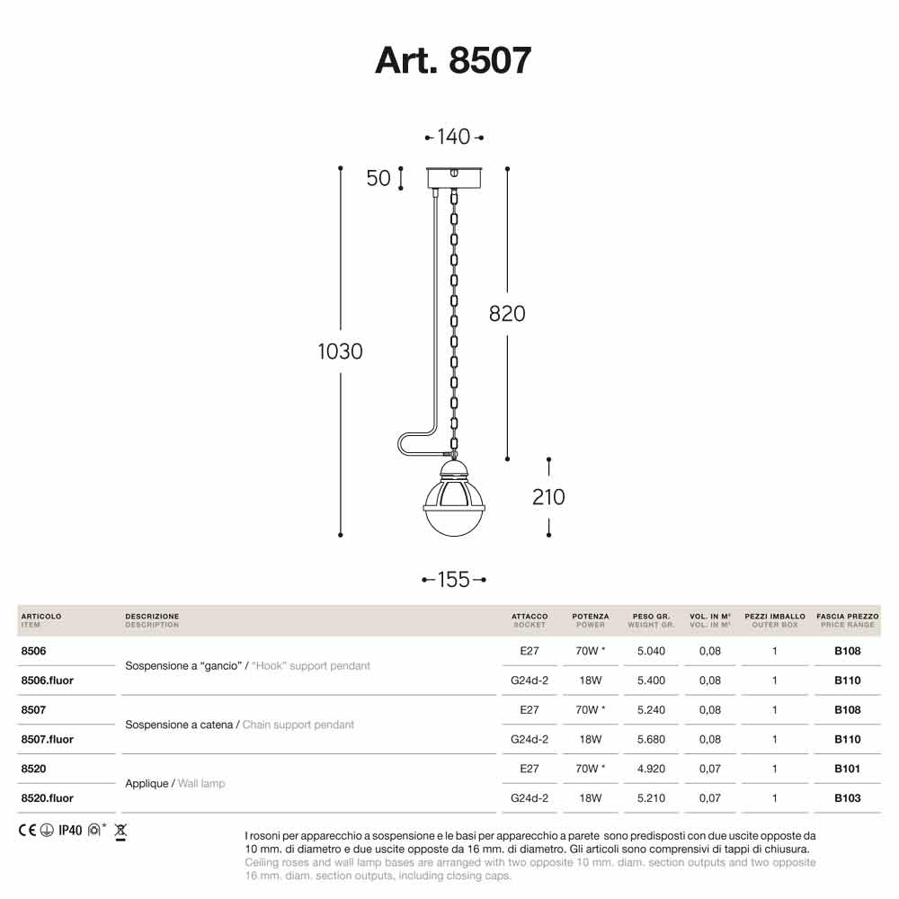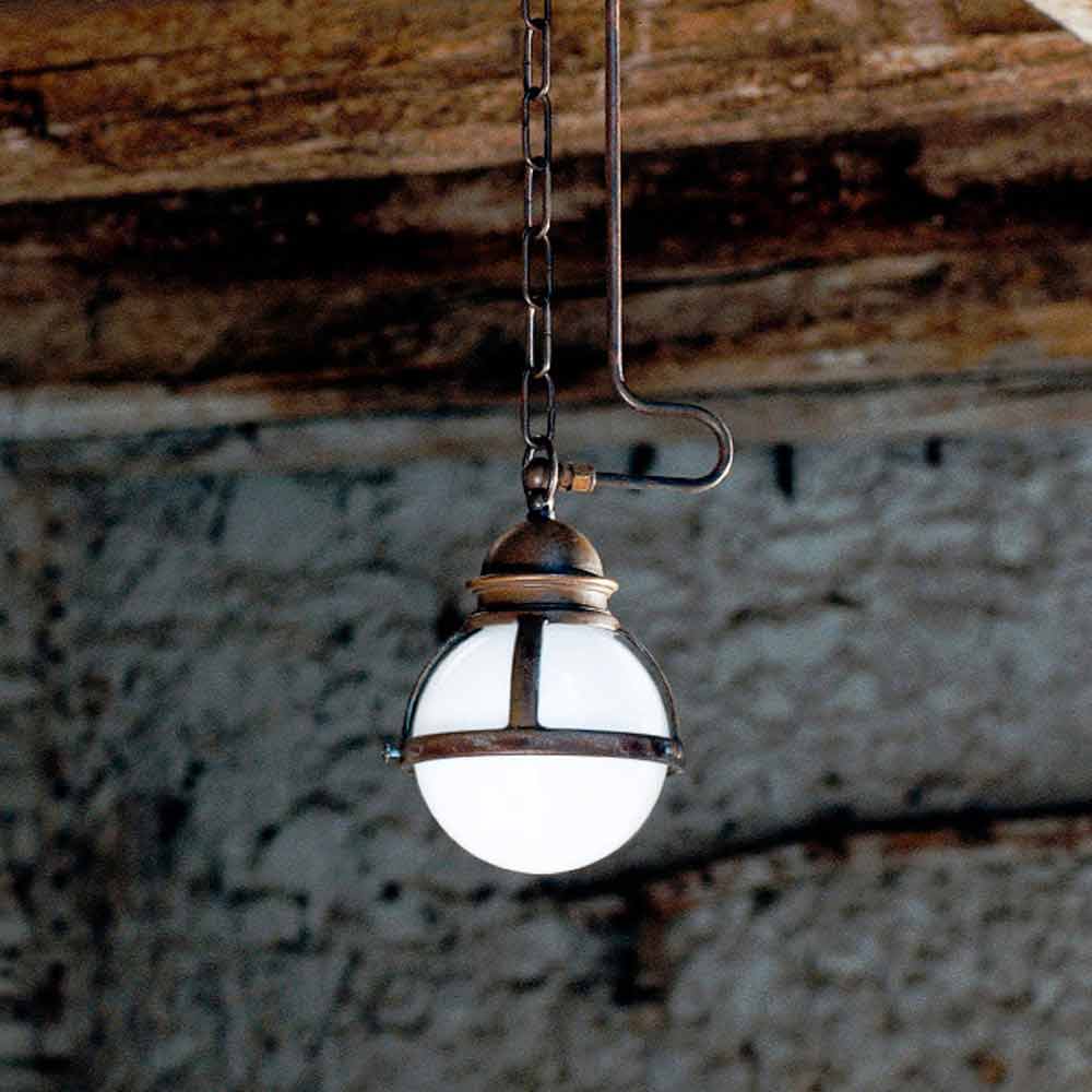This item cannot be sold in the USA. Modern design pendant lamp Cimosa made of brass and glass by Aldo Bernardi, IP 40.