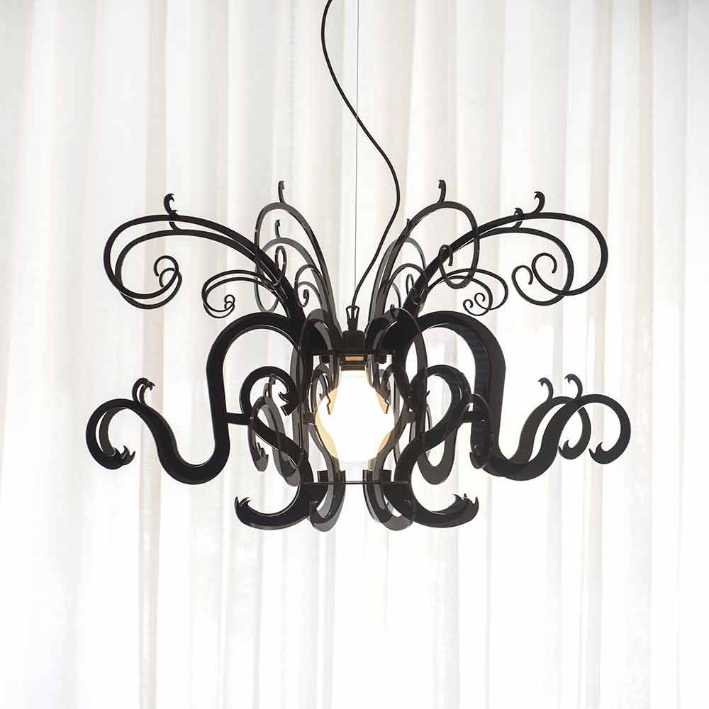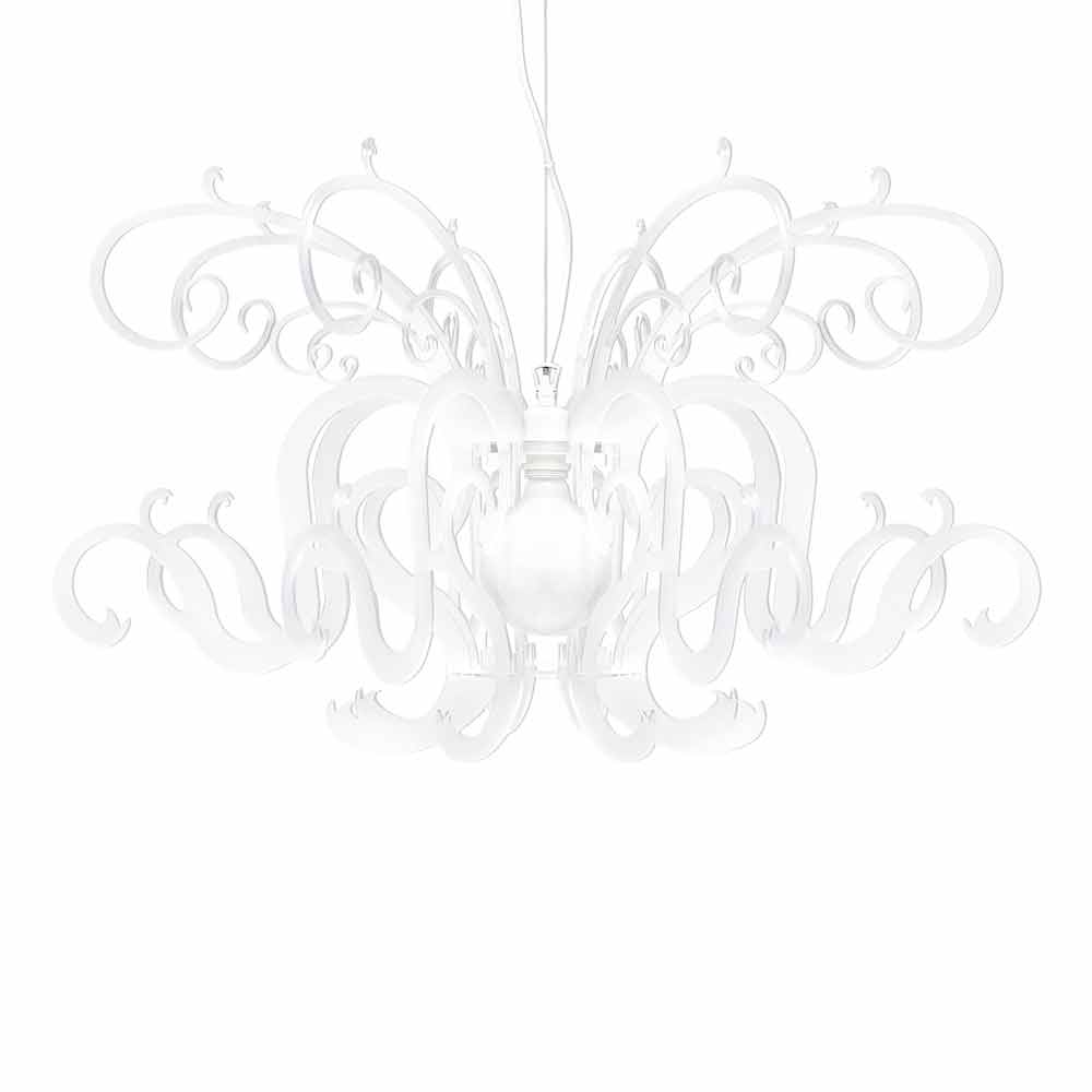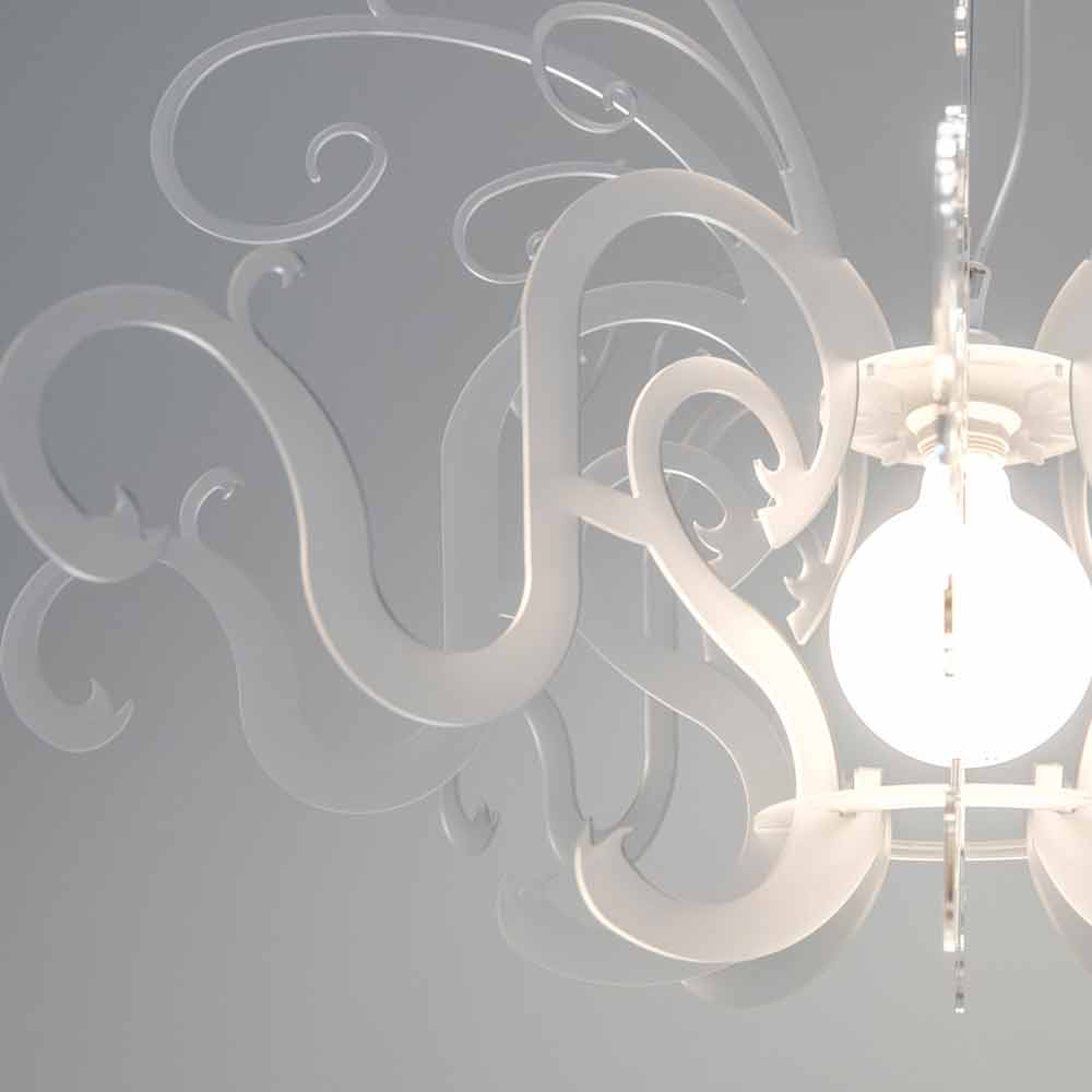 Malito is a majestic chandelier made of virgin polymer PMMA plexiglass in white or black.