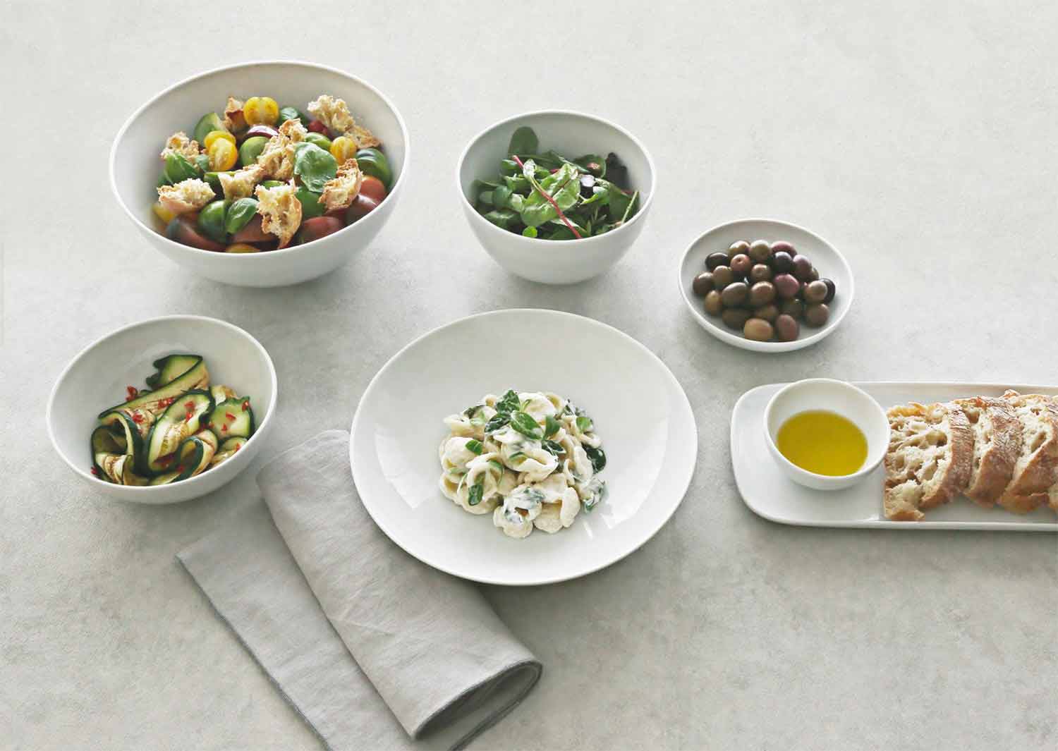 The design of this set of plates and aperitif bowls is ultra-modern and elegant, in line with the needs of the new global diet. A simple and not obvious solution for tastings and snacks in company, creating sophisticated and contemporary atmospheres.