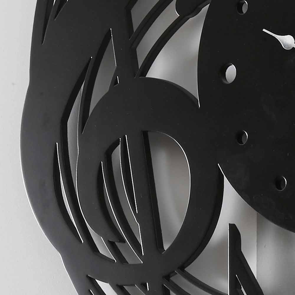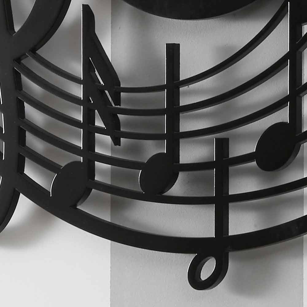 Modern Design Round Black Wall Clock in Decorated Wood - Music
