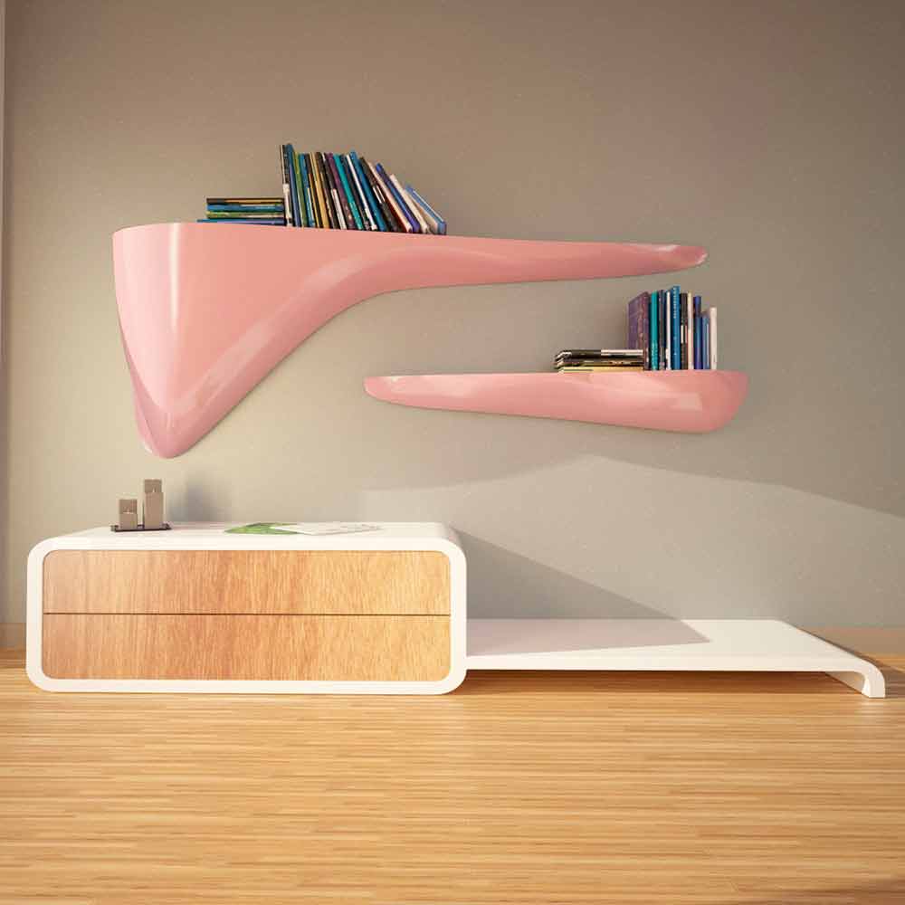 Modern design shelf made in Italy, Sizzano Sizzano is a shelf with a particular shape made entirely of Solid Surface®; perfect for decorating environments with originality and class.