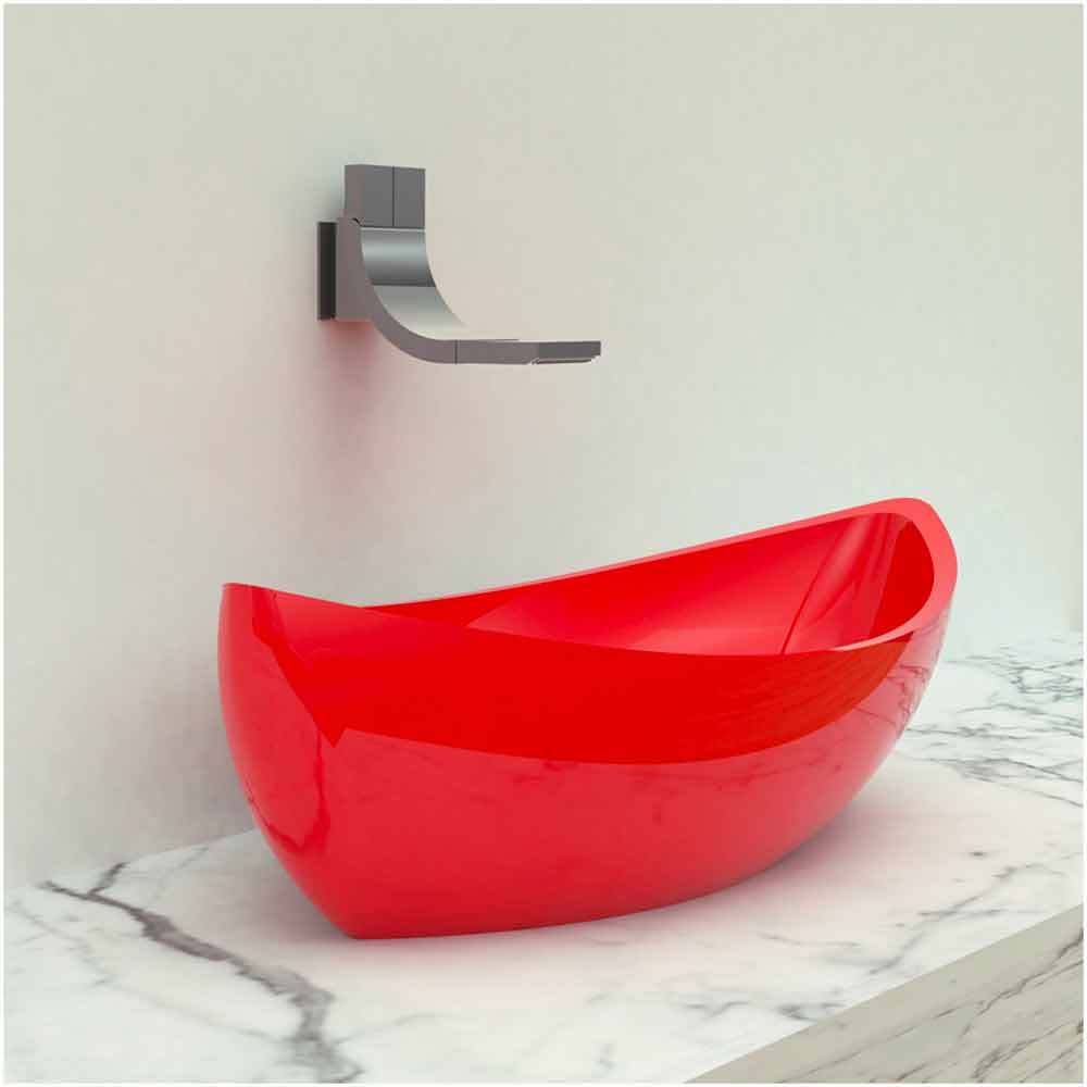 The concept of the Sashimi washbasin traces the same lines as the Funamori bathtub, a small wooden boat in which sushi and sashimi are served in Japanese restaurants.