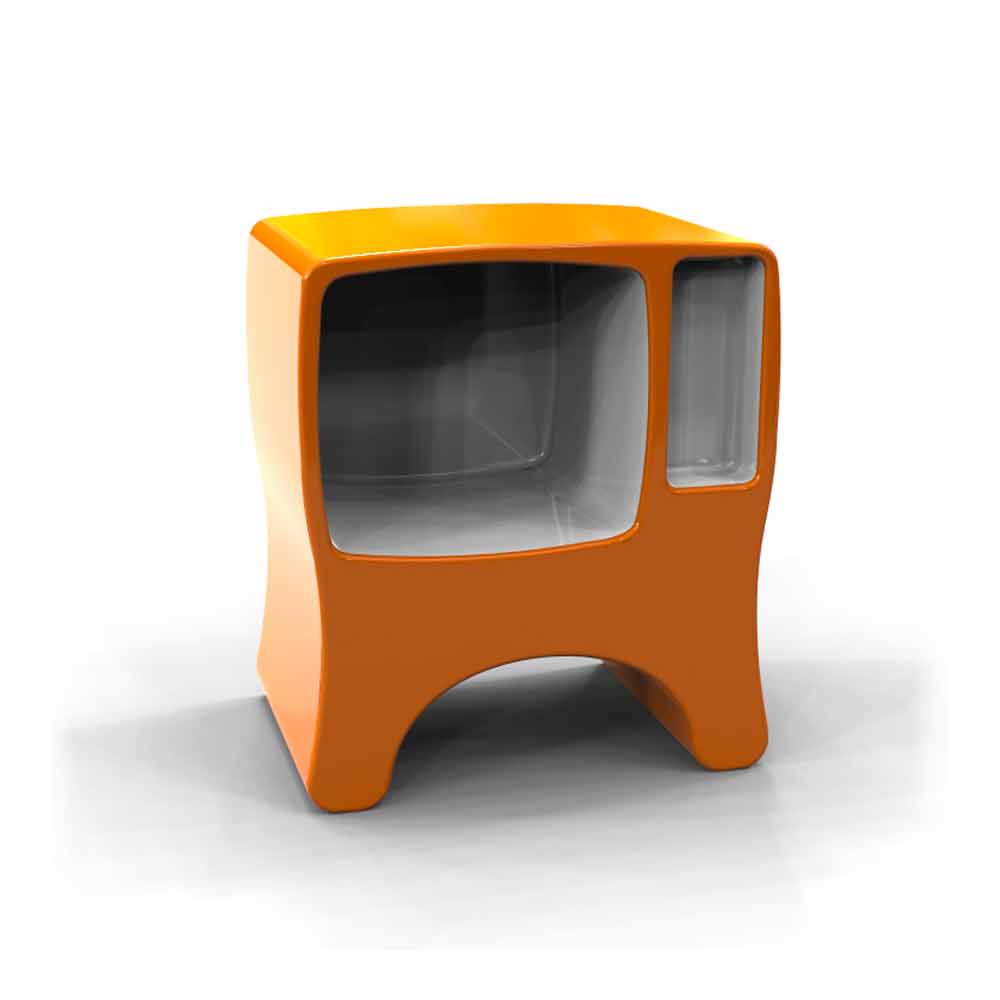 Catodico is a storage unit or, if necessary, a small bedside table. It harks back to old CRT TVs. The idea is to turn it off, empty it and put in what everyone wants.