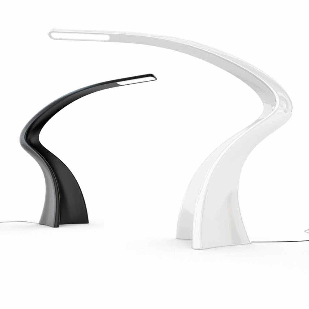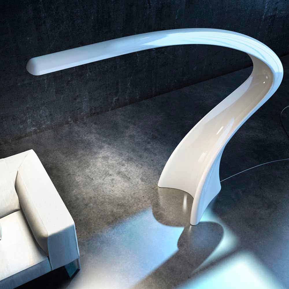 Large monolithic floor lamp with a slender and fluid shape made of Solid Surface ;.