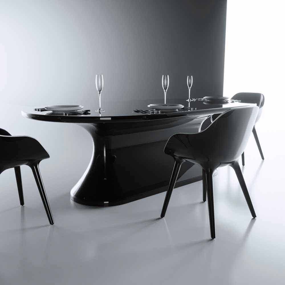 Material: Solid Surface; Purity of Design. Thanks to its extension and the purity of its lines, ComforTable is a piece with a unique design that gives the environment importance, sobriety and elegance. Available in monochromatic, bichromatic versions, with wooden top and with black marble top. 10 seater table.
