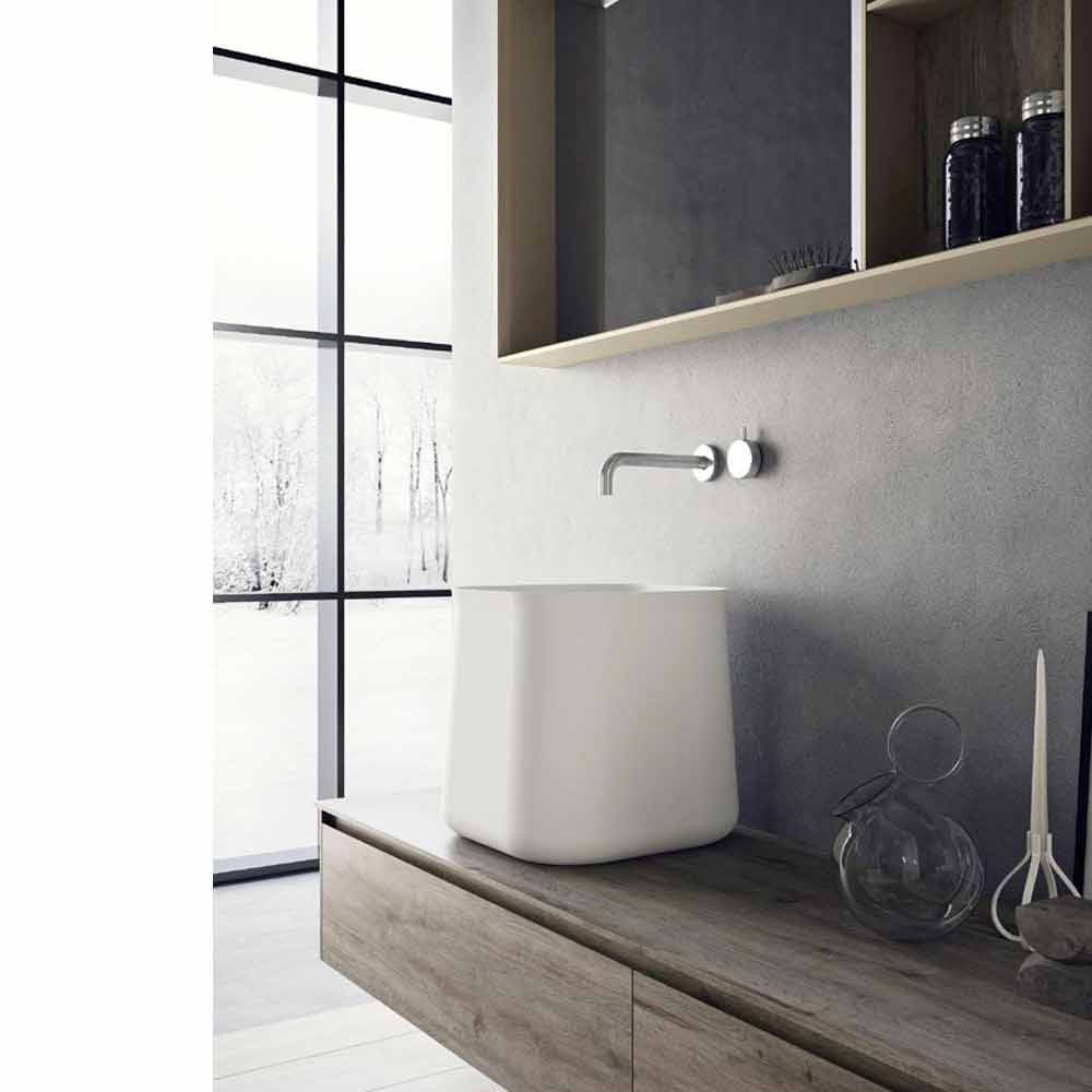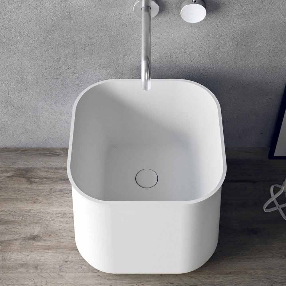 Countertop washbasin without overflow hole and free drain drain included, available in two versions: - in matt white Teknorit - in glossy white Novcryl