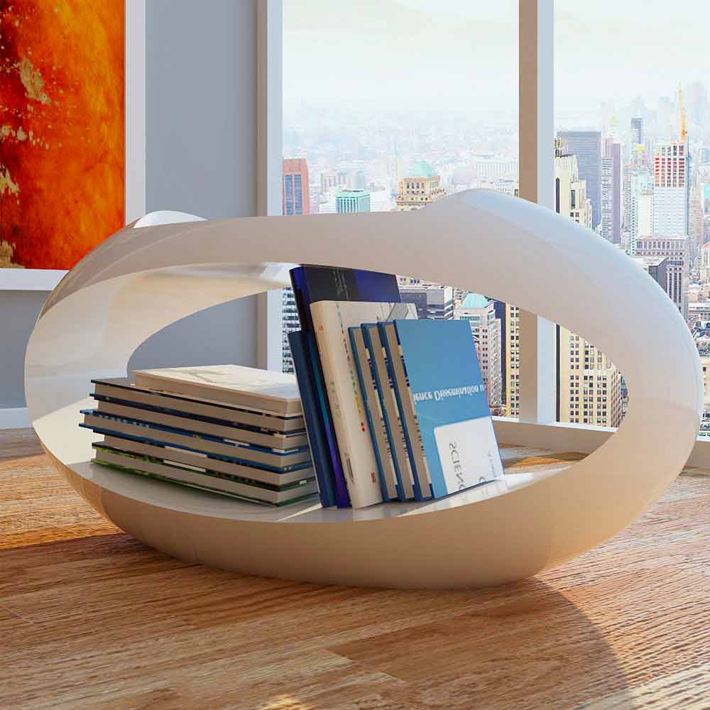 Design stool with integrated Ellix bookcase made in Italy Material : Solid Surface; Finish : Glossy / matt available in different chromatic variations Designer : Luca Degano Measurements : L. 80 x D. 34 x H. 39 cm Weight : 5 Kg