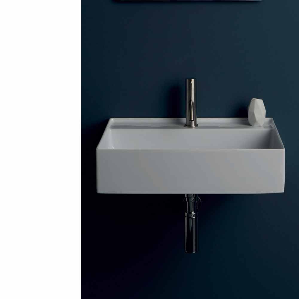 Sun modern design ceramic wall-hung washbasin 60x45 cm, made in Italy