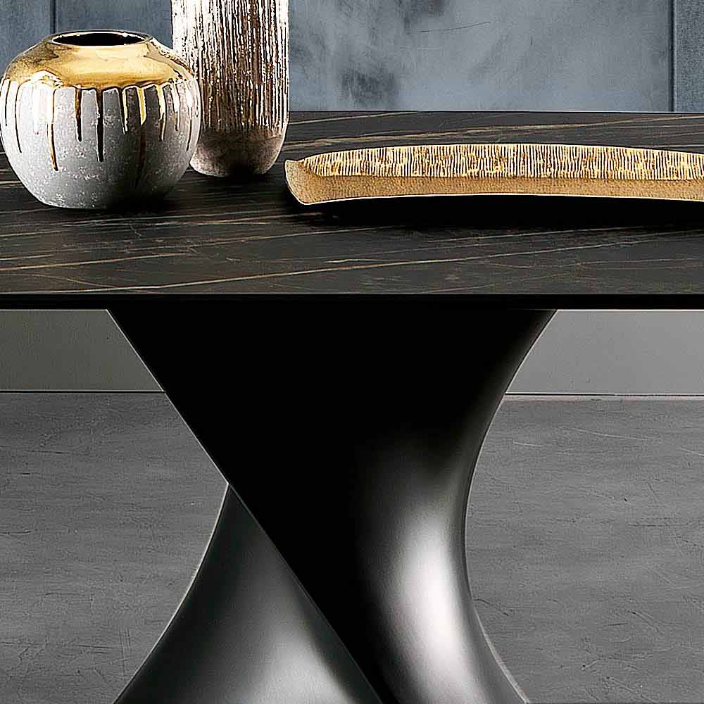 Elliptical Dining Table in Ceramic and Aluminum - Yamir