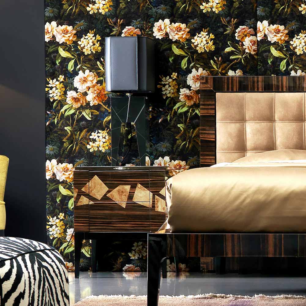 Handmade in Italy with a black lacquered solid wood structure with fabric hat.