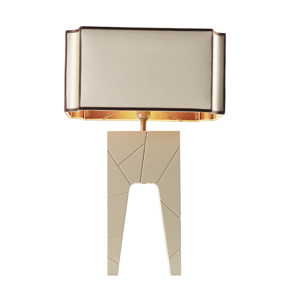 The Zarafa lamp has a solid lacquered solid wood structure, chosen between two beige and black colors with a fabric hat.
