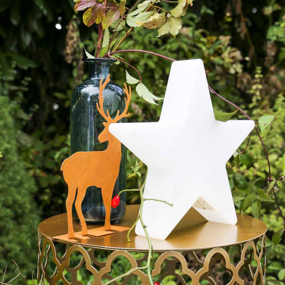 The five-pointed star- shaped table lamp features a classic, elegant and versatile design that can be placed in the living area rather than on the terrace. Also ideal as a Christmas decoration.