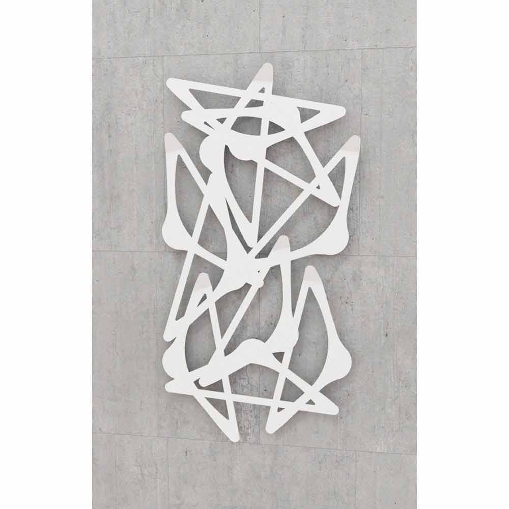 Modern design vertical coat hanger Blabla Mess to clean up. If not between words, at least among jackets and coats. Blabla is a funny coat hanger made of laser-cut metal, shaped like a chaotic and messy stylised hanger. It is available in the colours white, red, black, orange and green.