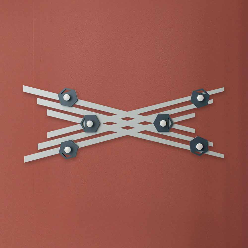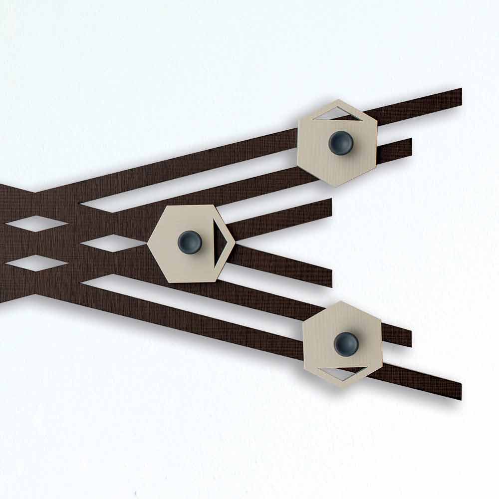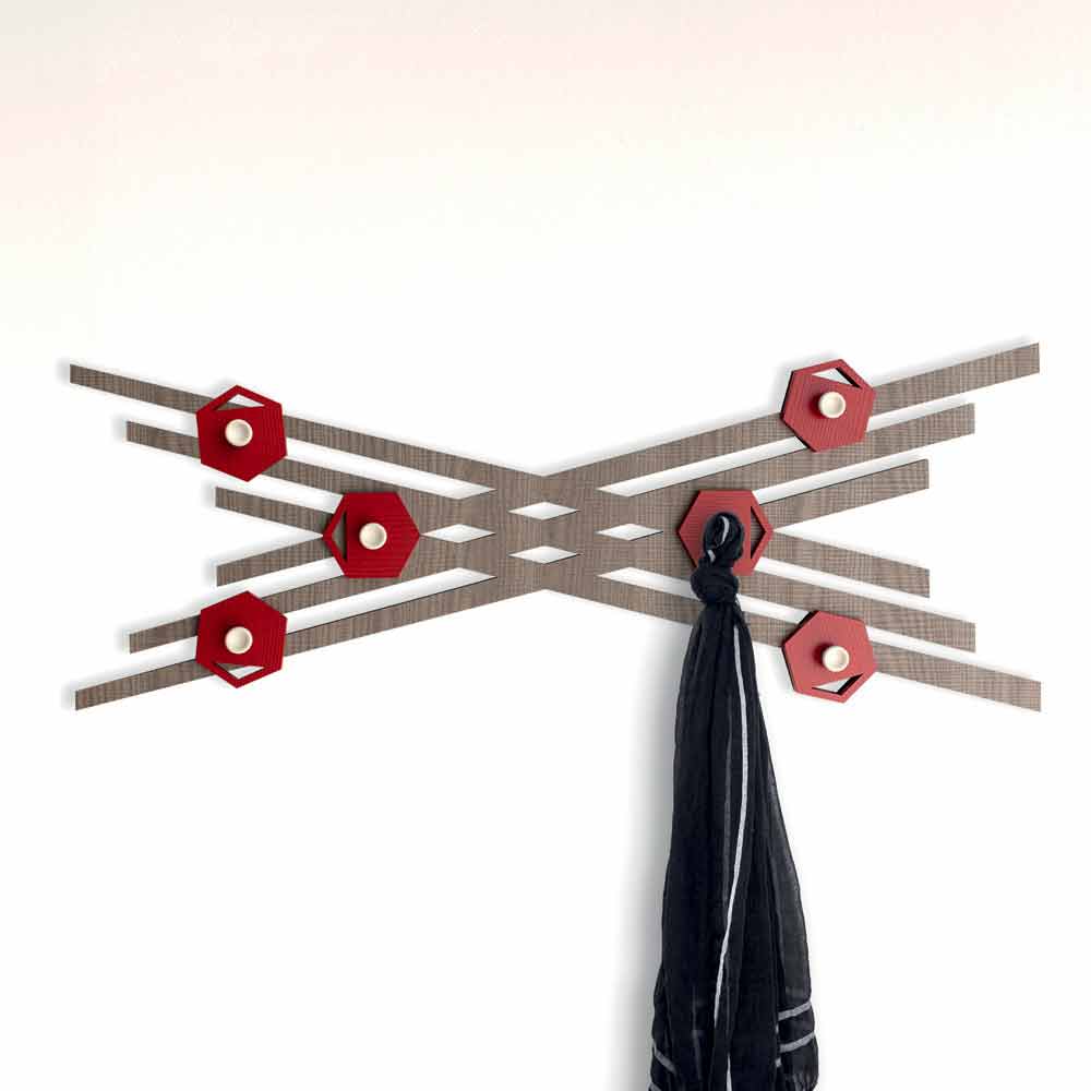 Coat hanger for wall entrance, modern design in colored wood, made in Italy.
