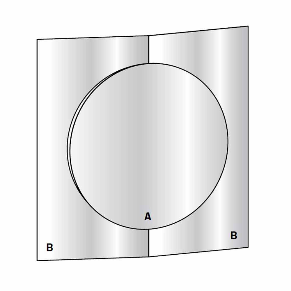 It has a structure compsed by two mirrored panels (B) lightly inclined and a third central round element.