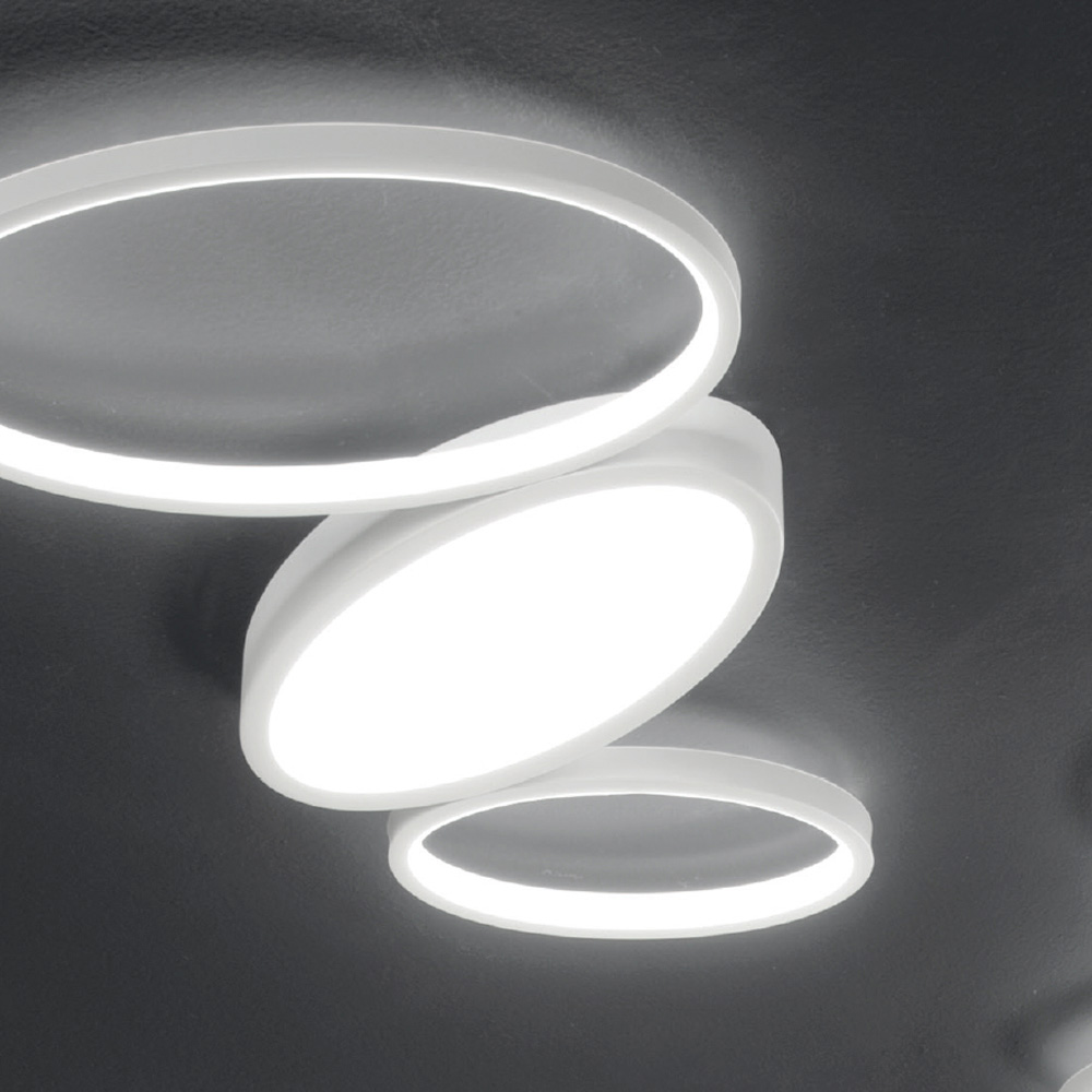 Modern ceiling light with metal structure and acrylic and silicone diffuser complete with dimmable LED light source . A modern and exclusive aesthetic characterized by the use of oval shapes of different sizes to give life to a refined and innovative design capable of gaining the center of attention within domestic spaces such as dining rooms, kitchens, living rooms or bedrooms bed with contemporary furnishings. The wonderful finishes proposed underline its elegant personality and innovative character , thus creating a perfect solution for those who love furnishing their home through the use of objects with a unique style. Its shape also allows it to be installed on the wall as a practical wall light, making it even more functional and increasing its value and value.