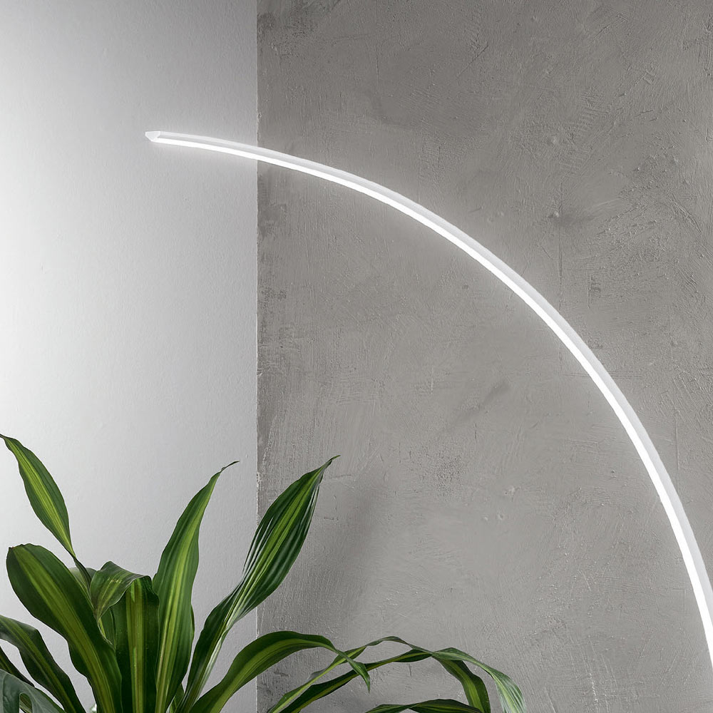 Modern floor lamp entirely made of painted metal with dimmable LED light source . A particularly sober and minimal style that adapts perfectly to any modern stylistic situation in which it attracts attention thanks to its simple and clean but at the same time original and avant-garde aesthetics. Its peculiarity is represented by a strong functional side which allows you to ensure diffused and high-quality lighting , ideal for creating welcoming atmospheres within your living area.