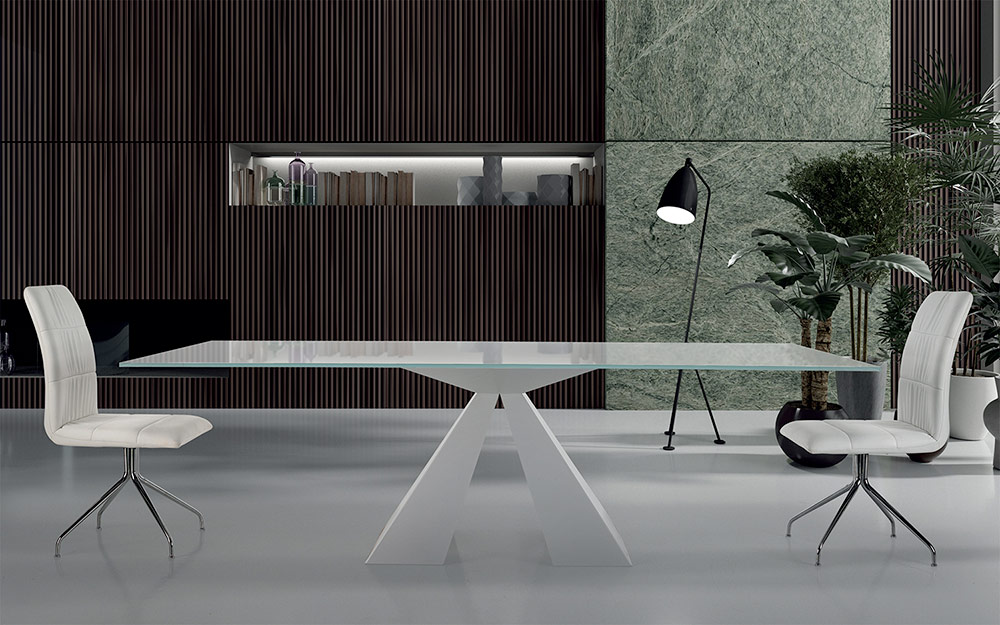 The Dalmata living room table is perfect for giving all your spaces design and refinement without sacrificing practicality and functionality. Handcrafted in Italy with top-quality materials and 100% made in Italy. Composed of a tempered glass top and a white lacquered steel base.