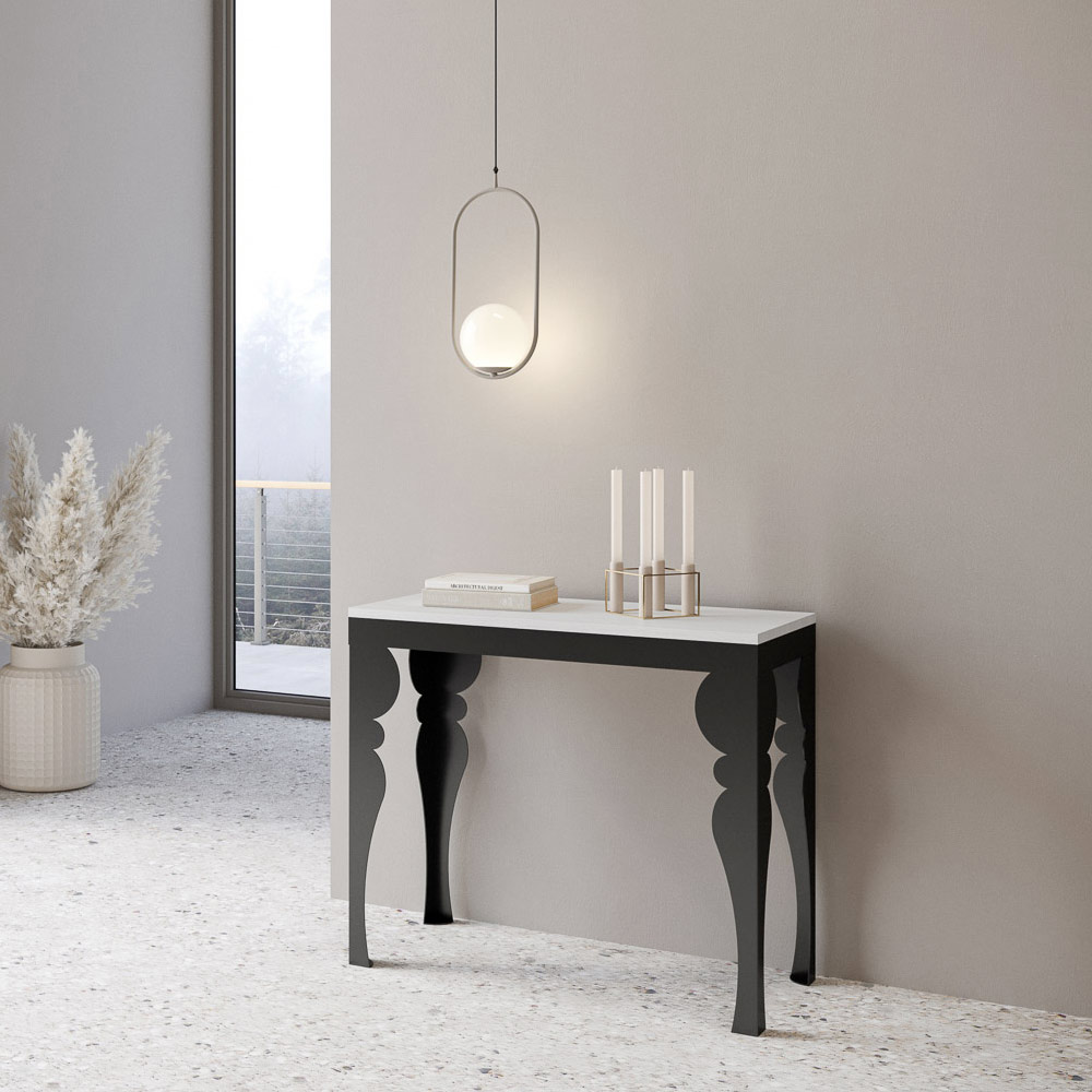 This extendable console table represents a sublime fusion of elegance and ingenuity. With its carved legs that bring to mind the grace of bygone eras, the console table presents itself as a design object that combines history and modernity.