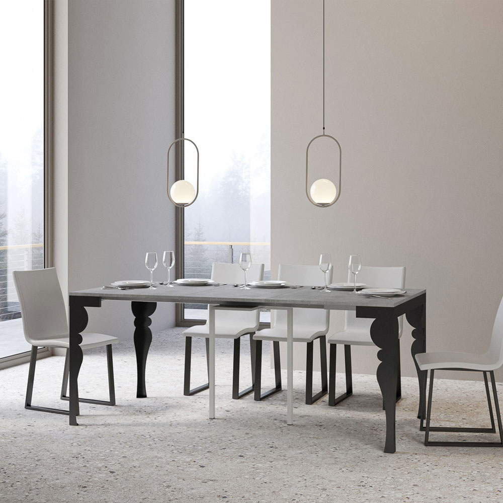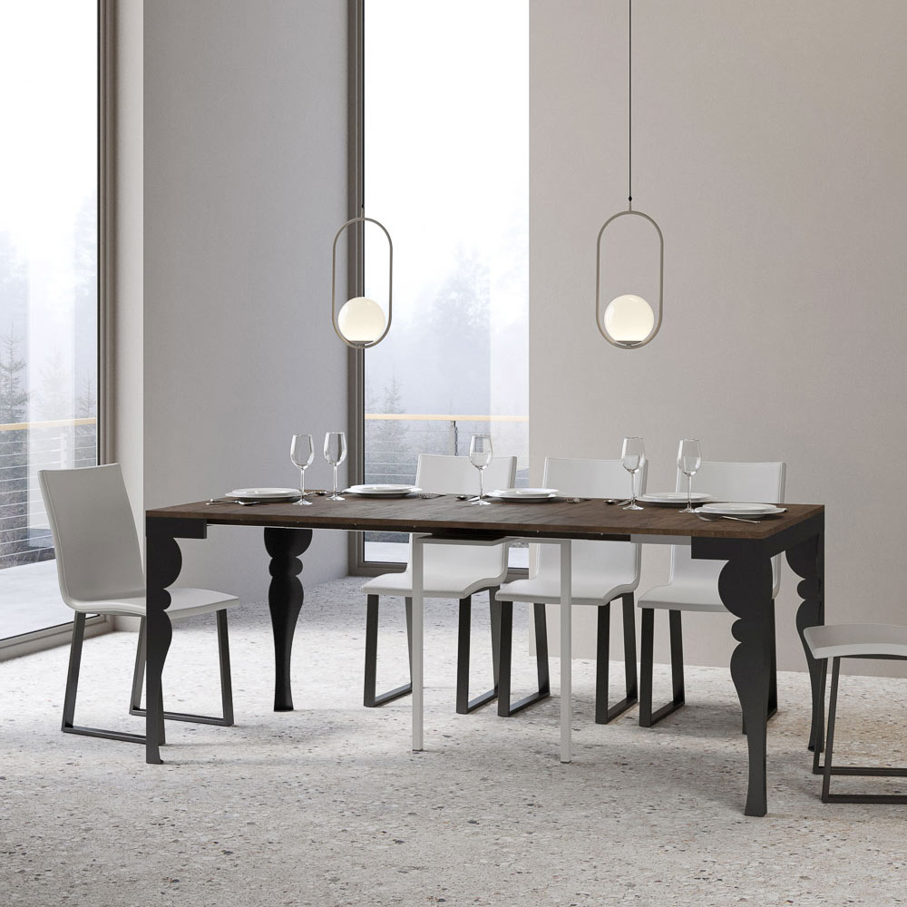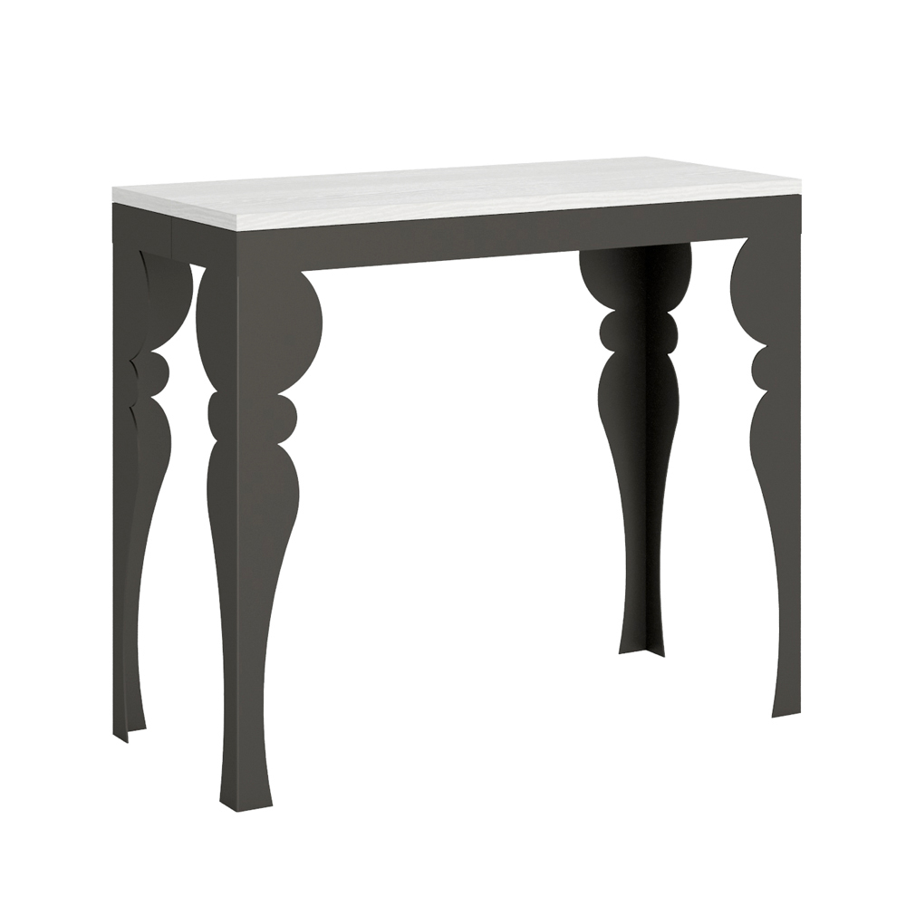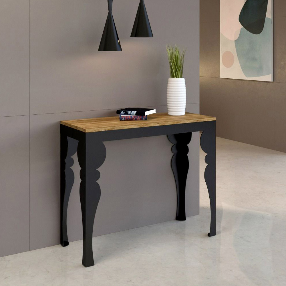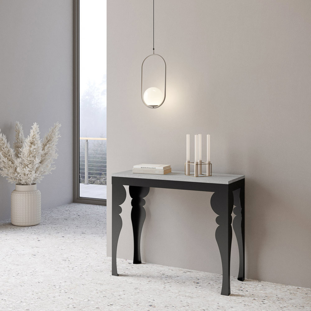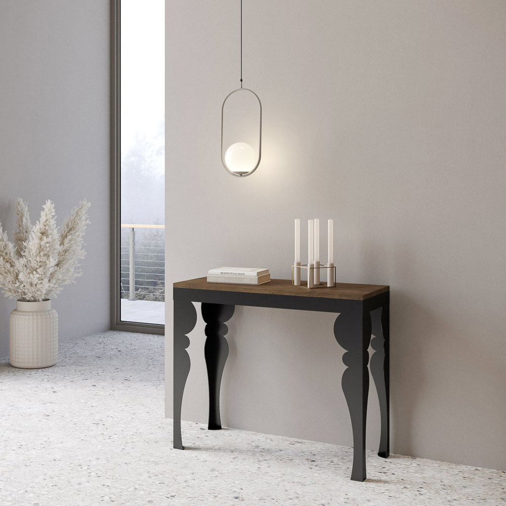 The contrast between the anthracite gray of the legs and the wood of the top creates a visually stimulating dialogue, making this piece of furniture a sophisticated choice for any room. Perfect as entrance furniture or as an additional surface in a living room, the console table transforms with ease, extending to become the centerpiece of a dining room, ready to host memorable moments.