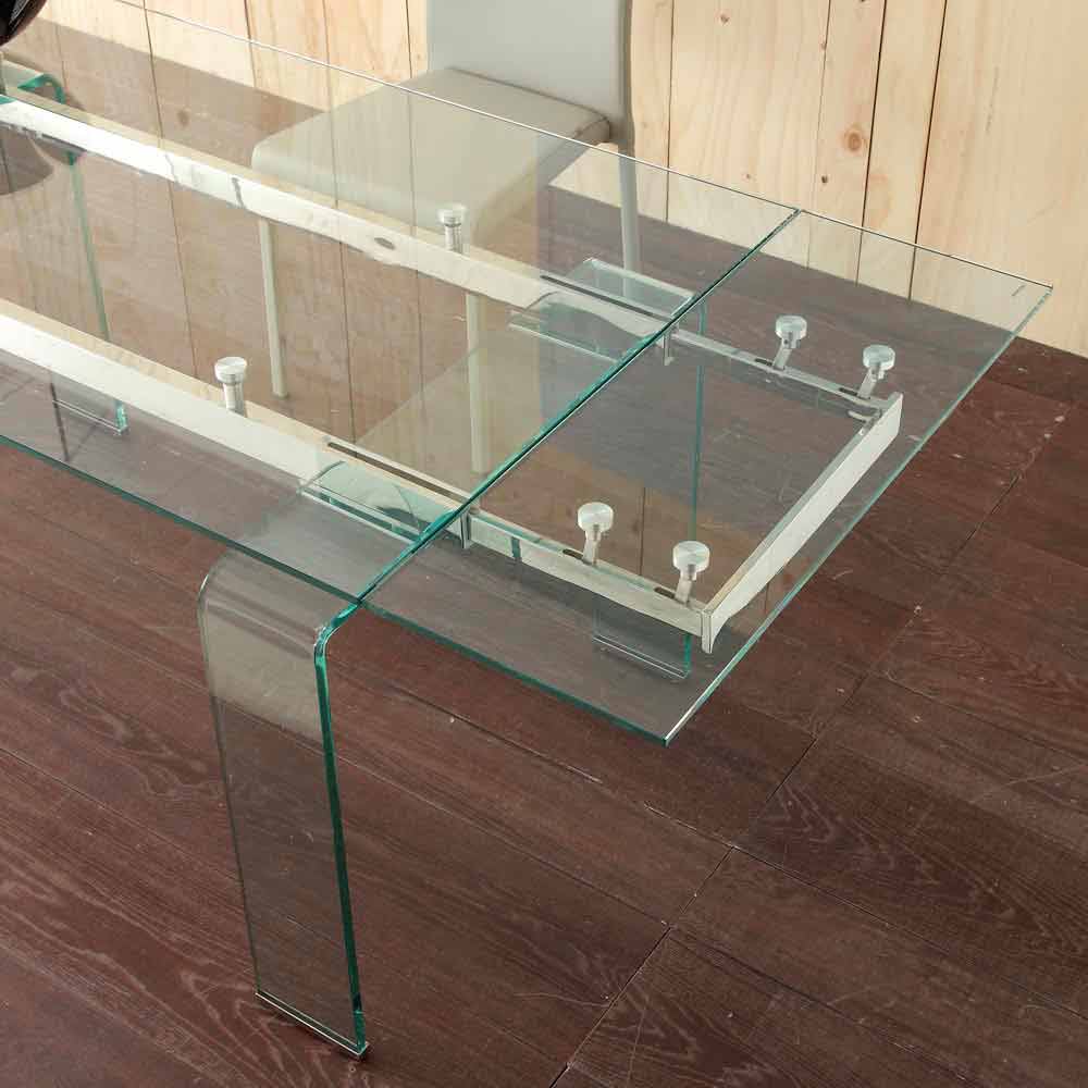 Once opened, it reaches up to 200 cm of lenght. Lord table's top is made of transparent tempered glass ( thickness of the top: 9 mm, table legs 14 mm. Its frame is made of chrome-plated metal.