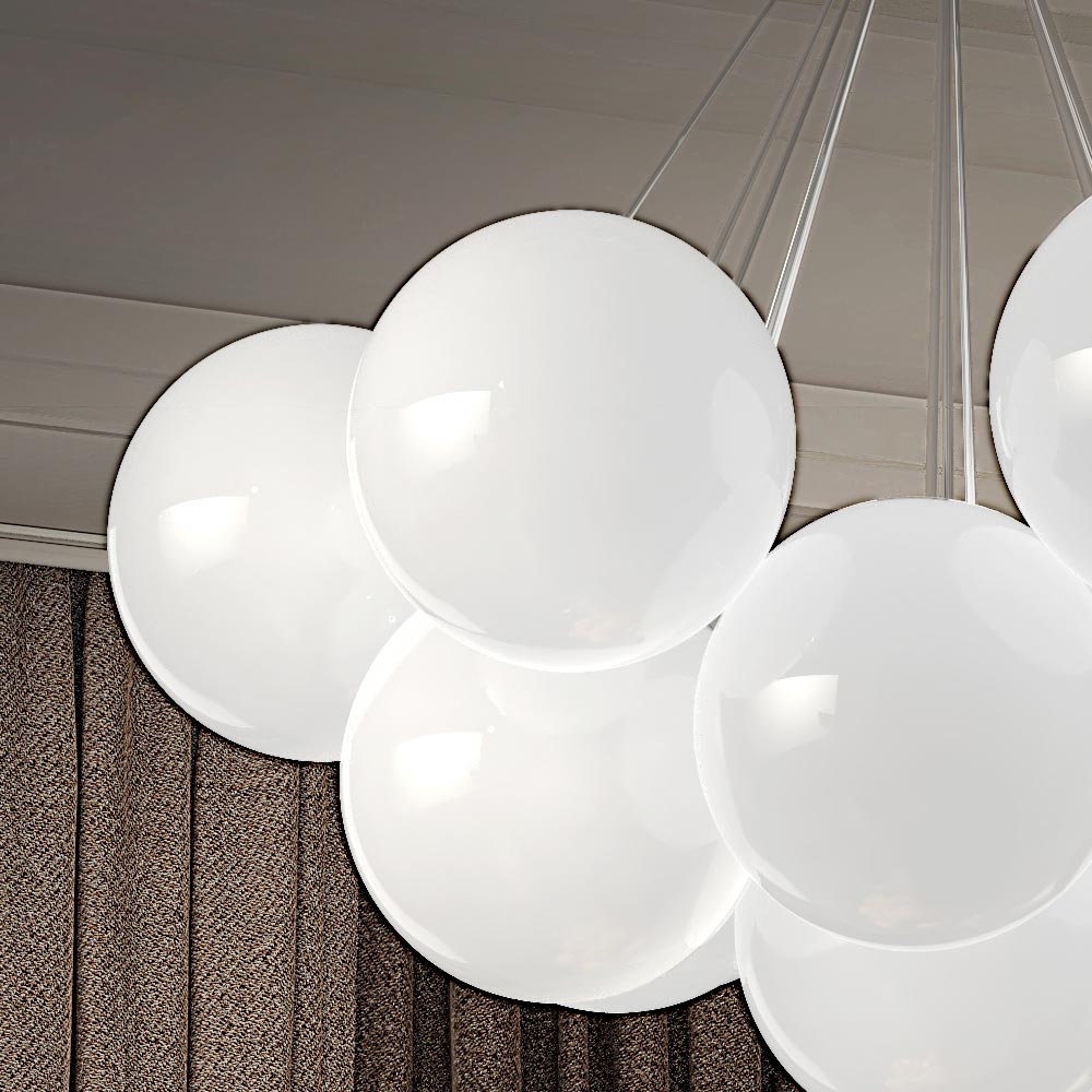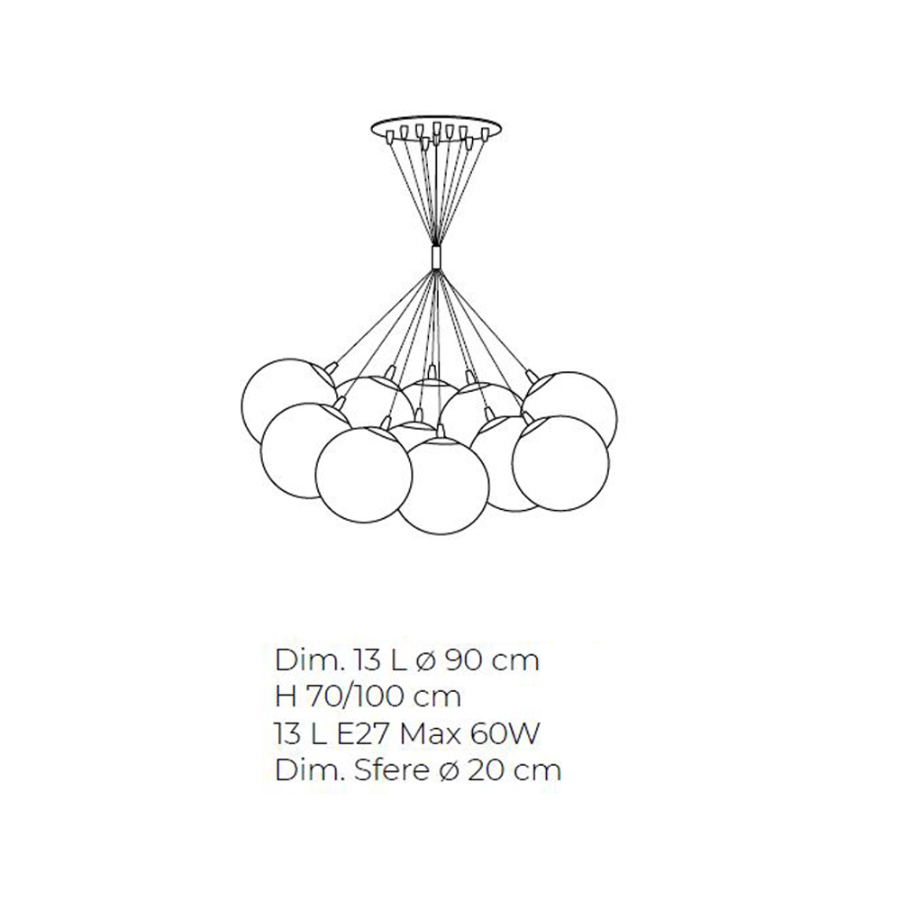 A work of art of imposing dimensions made of hand-blown cased glass ideal for filling and illuminating large spaces such as living areas or dining rooms thanks to an original aesthetic and unrivaled quality for an exclusive and particularly elegant result.