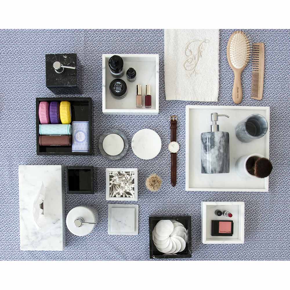 Practical handkerchief holder available in square or rectangular version entirely made of white Carrara marble handcrafted by specialized professionals. It is a unique piece as each block of marble used differs from the others for veins and shades.