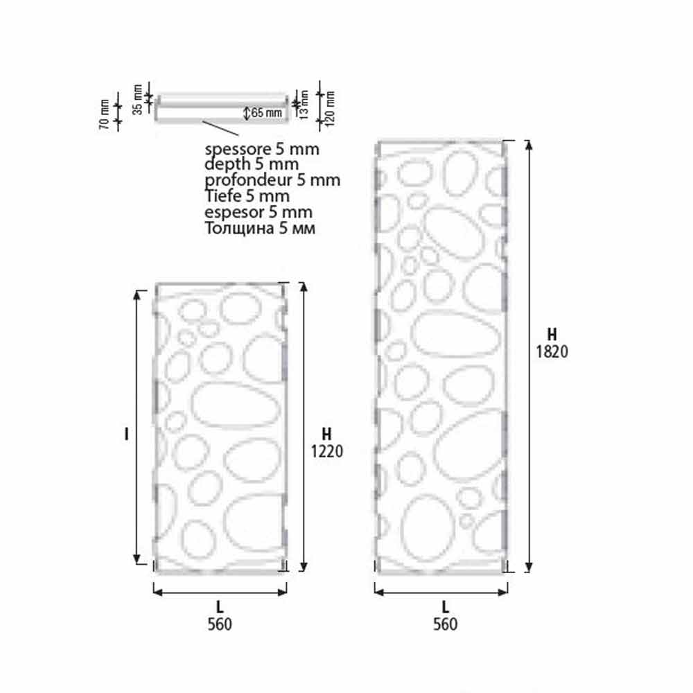 Available in different sizes *:- H 1220 x L 560 x Inter. 1160 mm x Output w (Δt50 *) 608; Yield w (Δt30 *) 320; Yield w (Δt26 *) 268