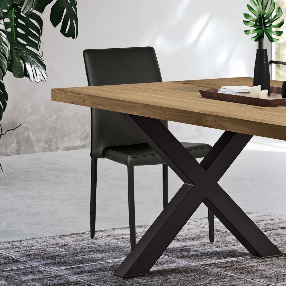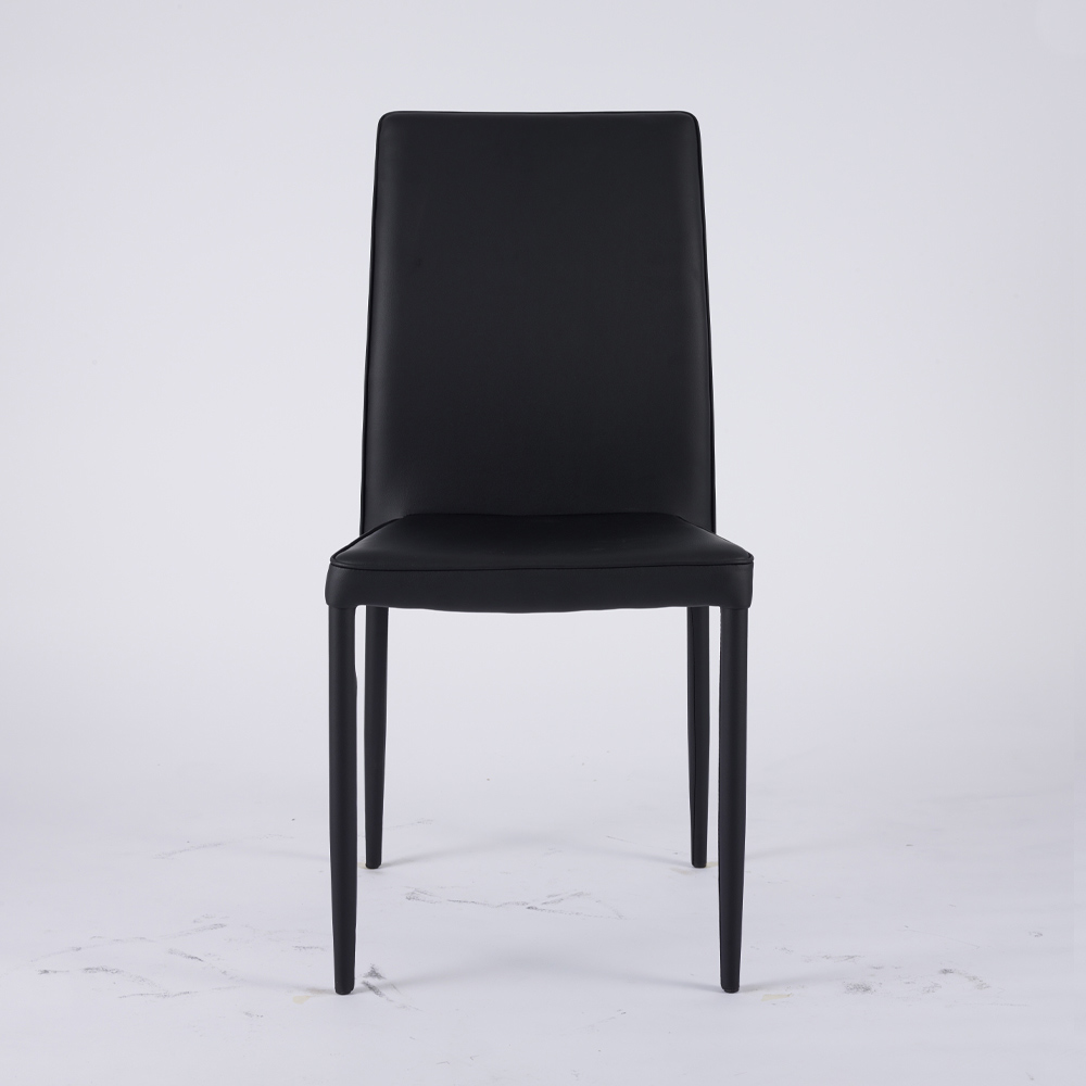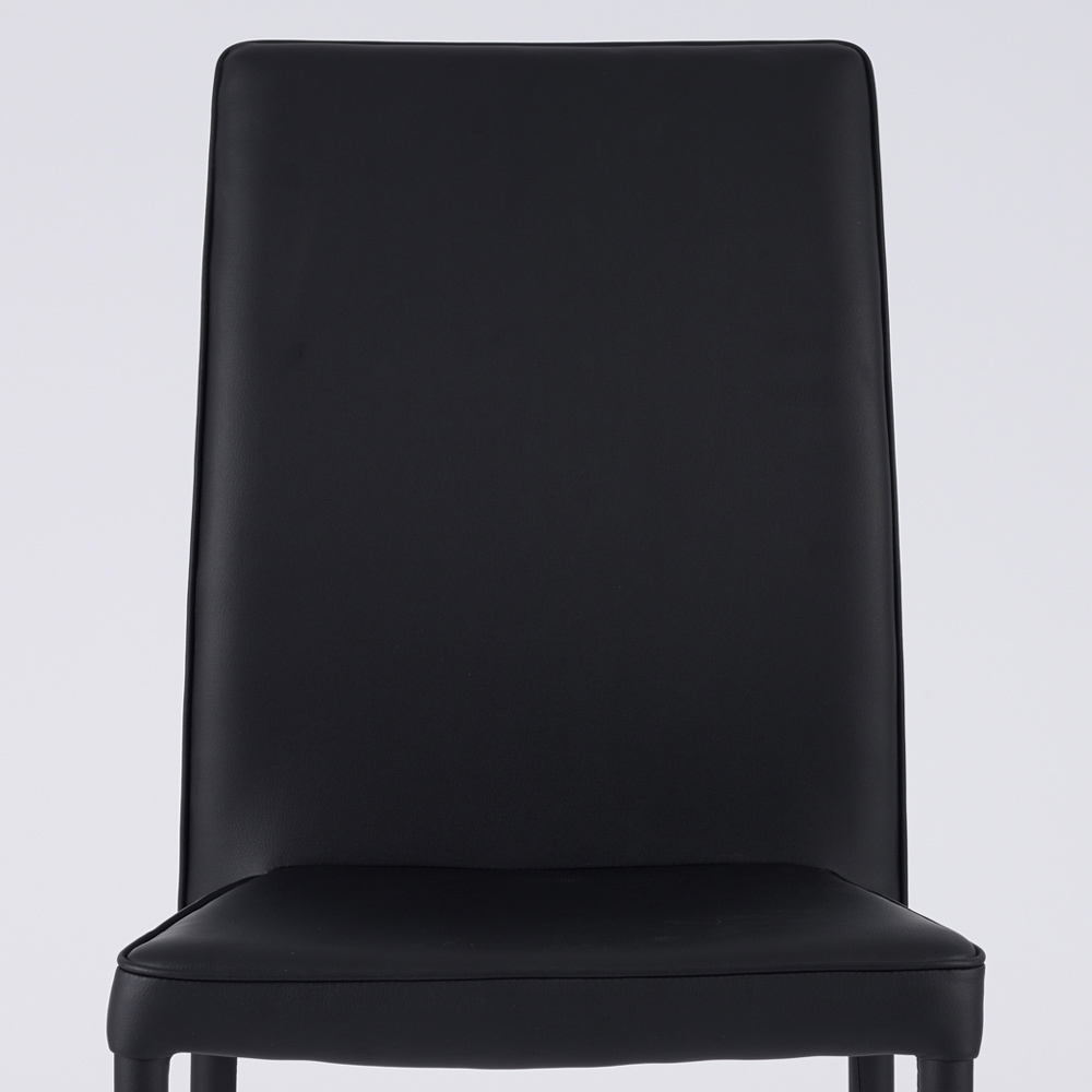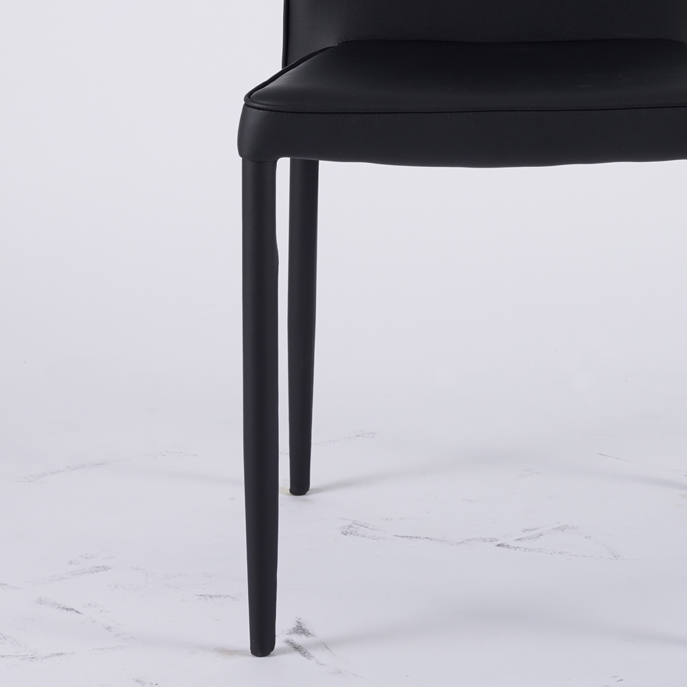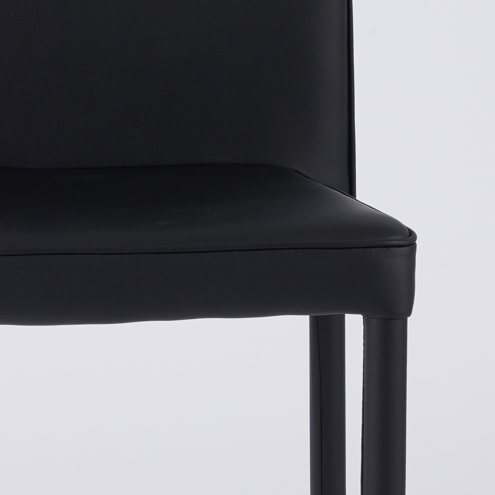 Chair with a modern design with steelshell completely covered in blackeco-leather. A furnishing accessory that easily adapts to any stylistic context in which it is inserted, helping to create a unique and classy atmosphere . The aesthetic lightness that characterizes its design makes it perfect for completing domestic spaces such as dining rooms and kitchens but also contract areas such as bars and restaurants with personality through its simple and refined shapes . The product is part of the new line of modern products made with respect for nature.