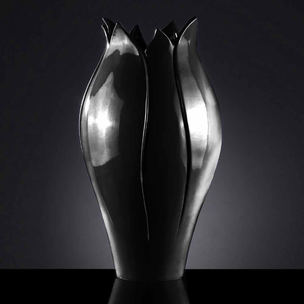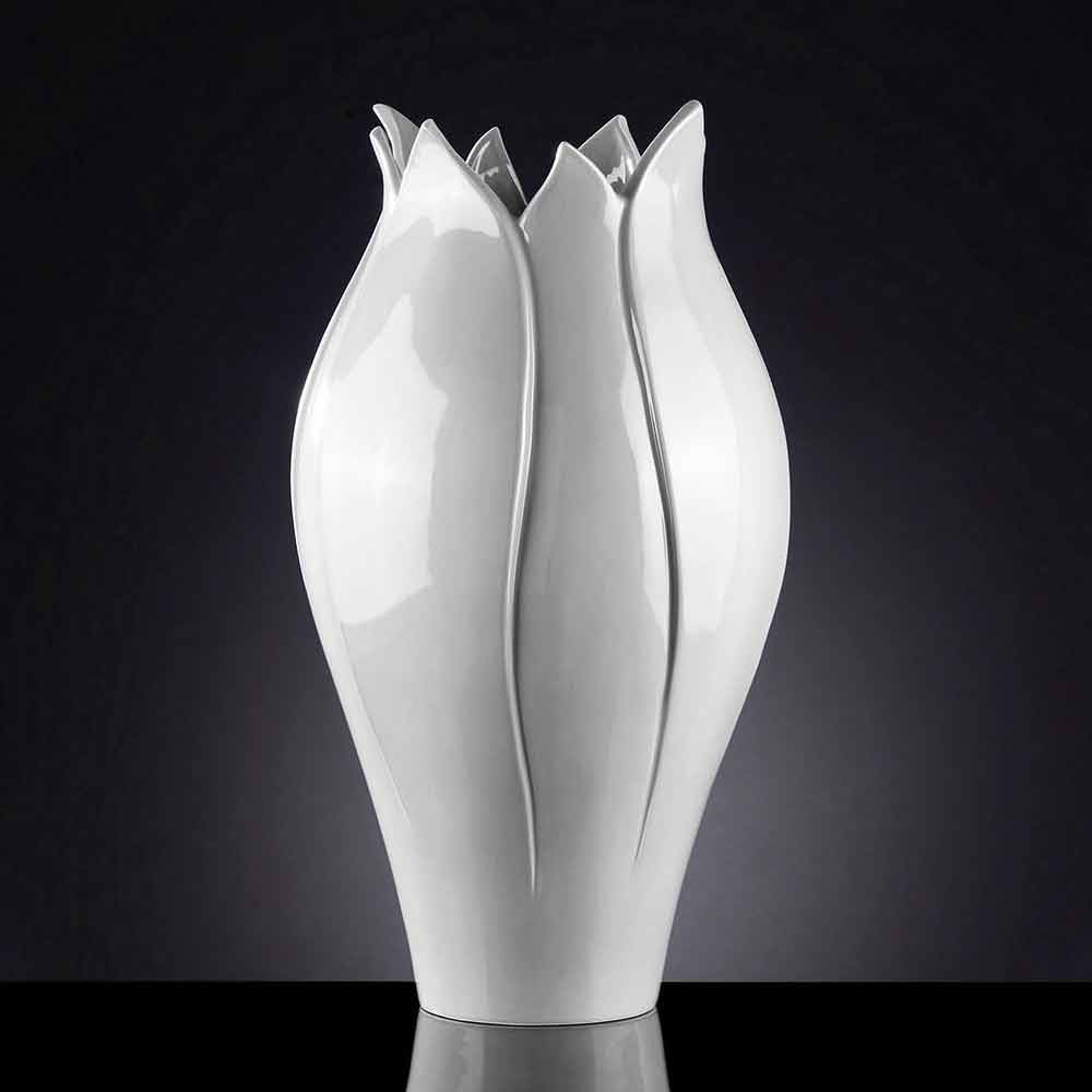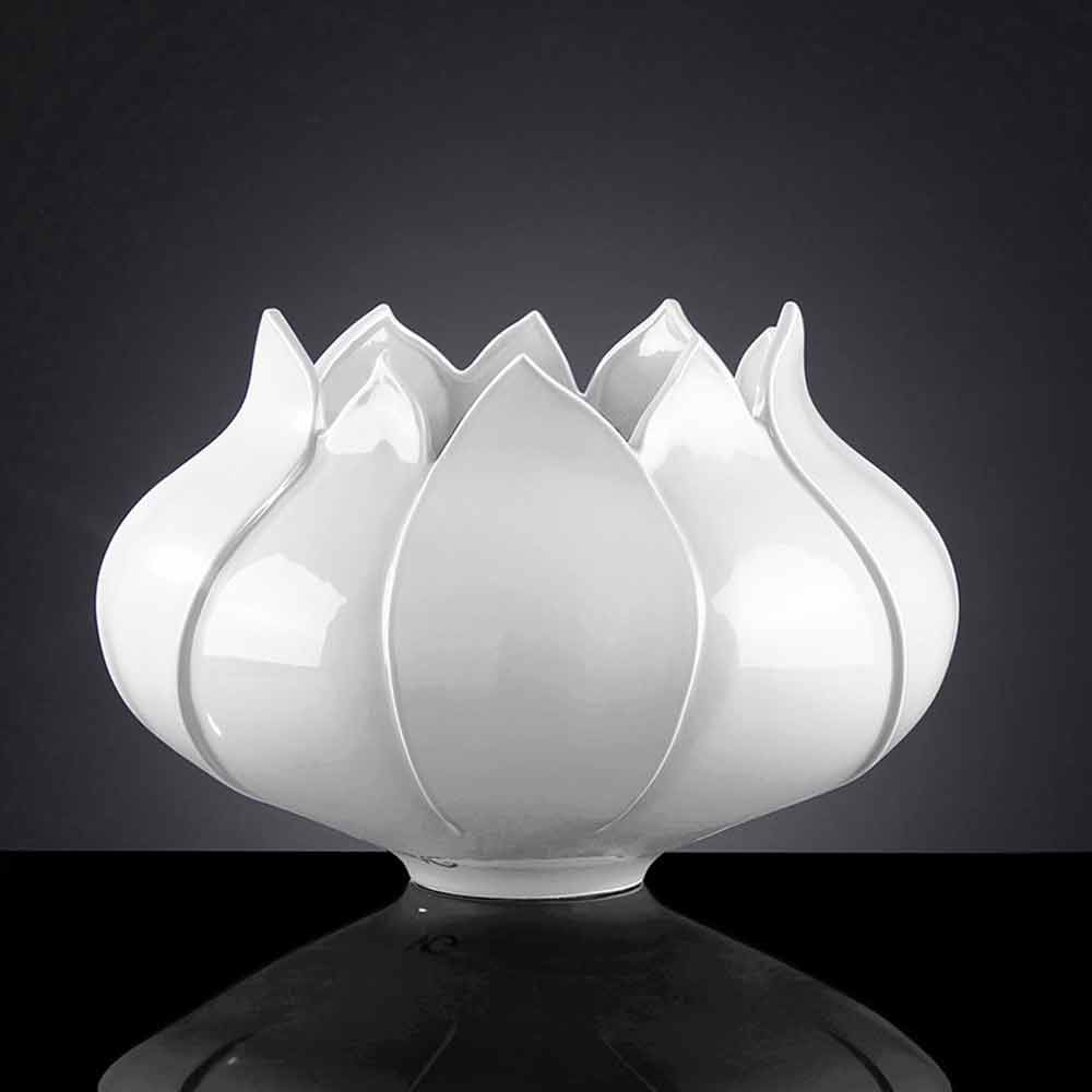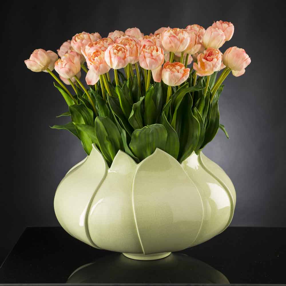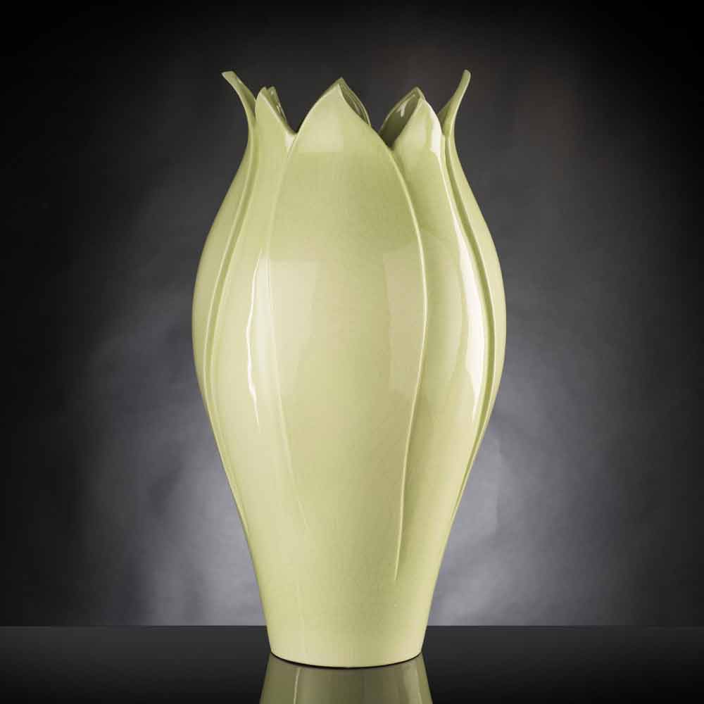 Indoor vase made of colored ceramic handmade in Italy. A particularly elegant design that recalls the shapes of a tulip offering an exclusive complement with a delicate aesthetic . The use of ceramics and the handcrafted production by skilled craftsmen expert in the sector underline and increase its value and quality for a result that can represent a real work of art in any domestic and non-domestic space . An ideal style for the most varied environments, from home furnishings to that of hotels, restaurants, contract areas, spas but also as a setting for events and weddings.