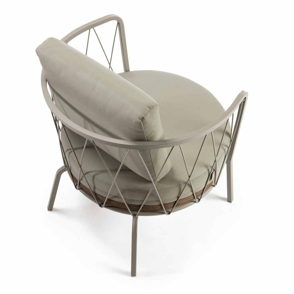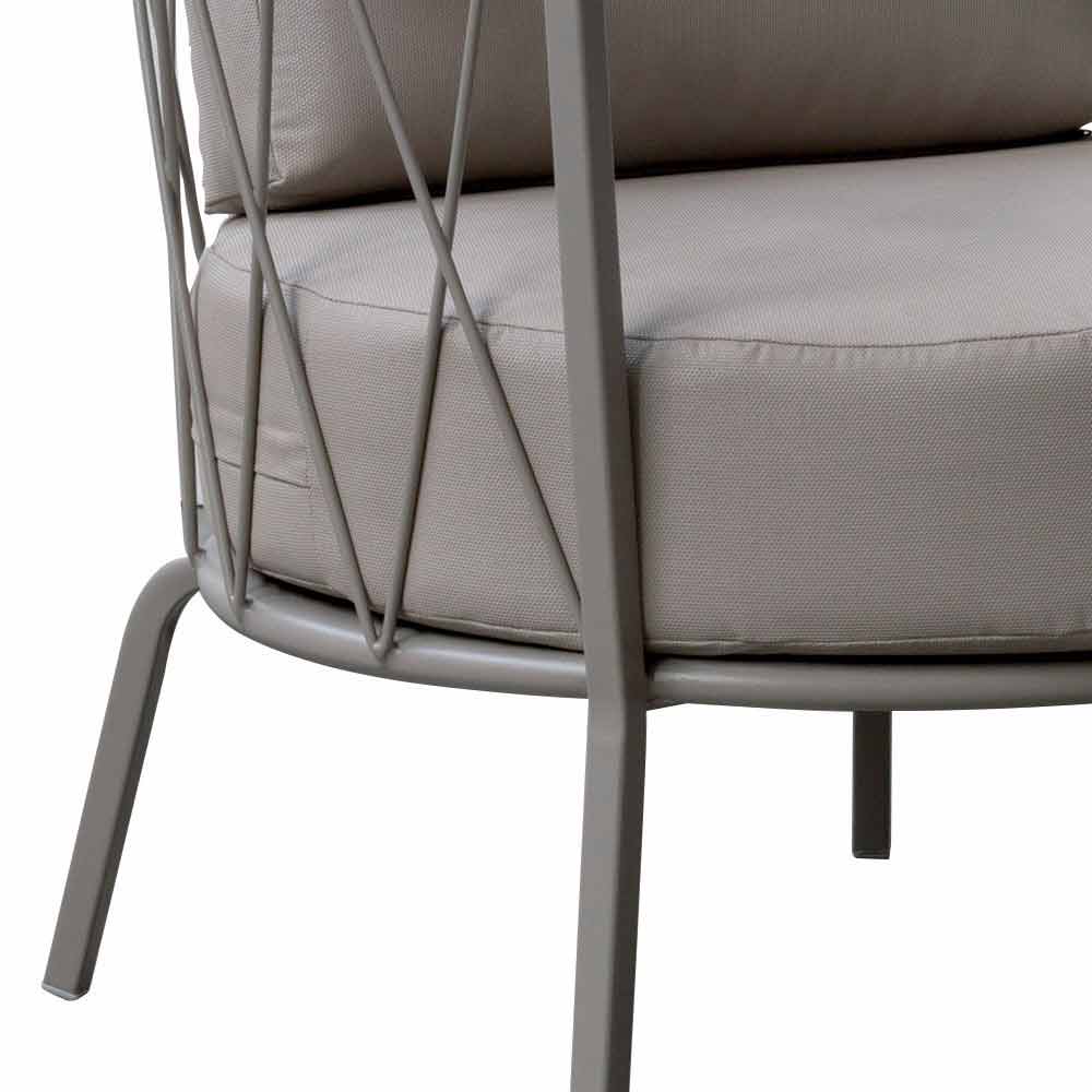 Designer outdoor armchair in fabric and powder-coated galvanized iron with cushion Made in Italy.
