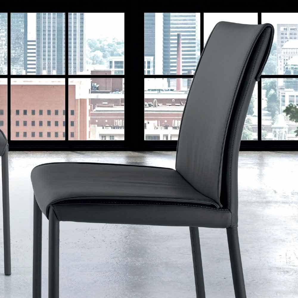 Padded dining room chair completely covered in fabric, leather, velvet or eco-leather; handcrafted in Italy.