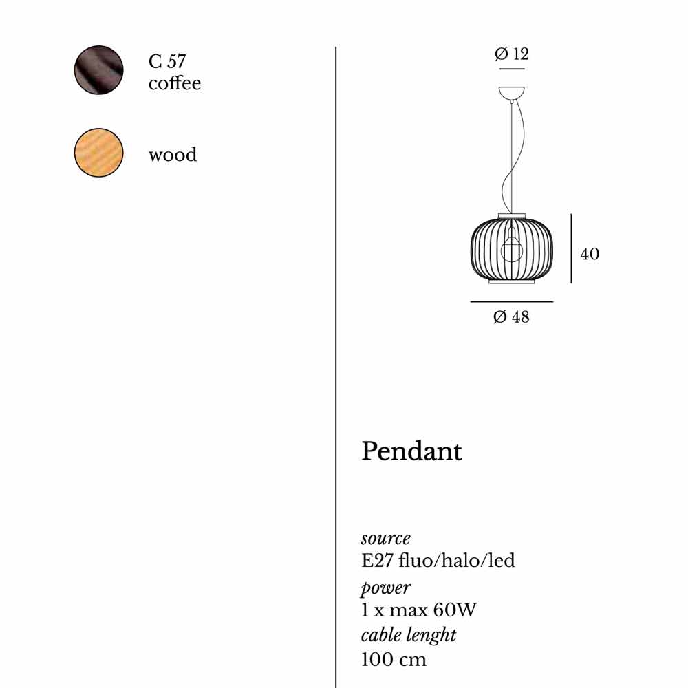 Suspension lamp made of shaped steel bar and painted with epoxy powders. The two bands that close the rounded body are made of natural wood. Beren is also available in custom colors. Request a quote to: clienti@viadurini.it . 100% Made in Italy product. Bulb: 1 x max 60w - E27 (not included).