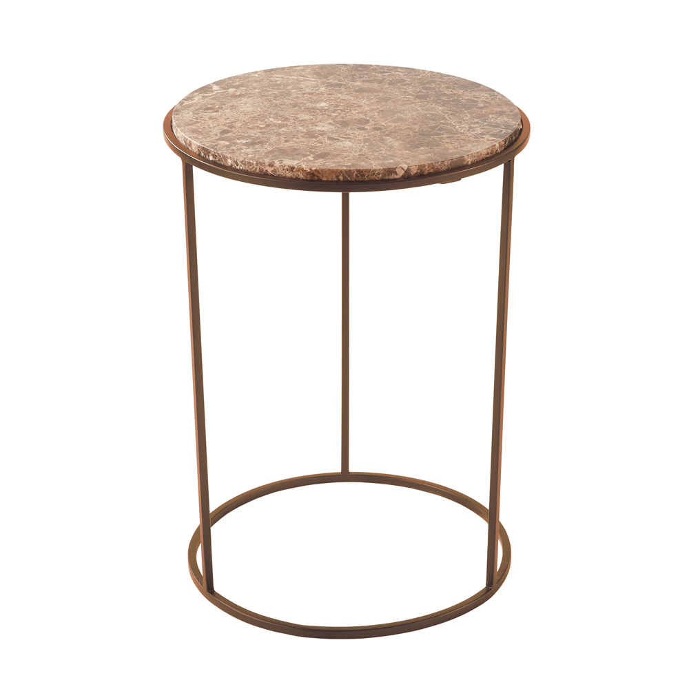 Round living room table with marble top in 3 finishes and metal base, luxury item made in Italy.