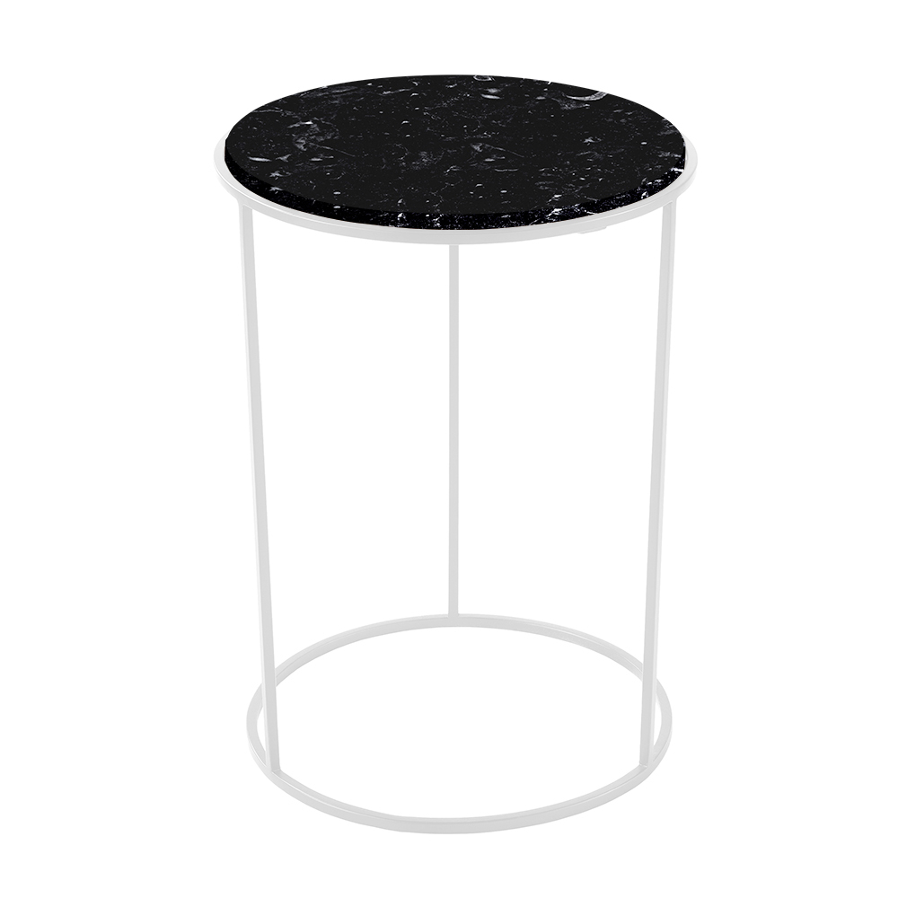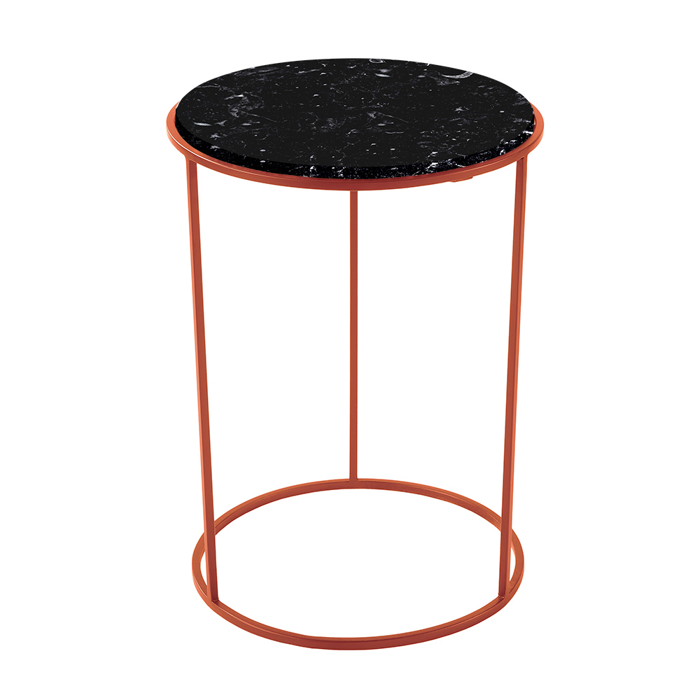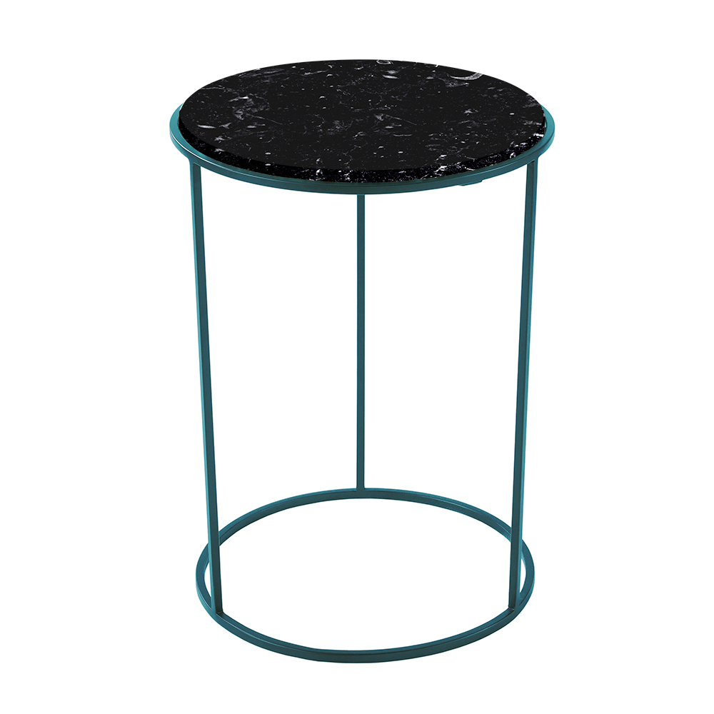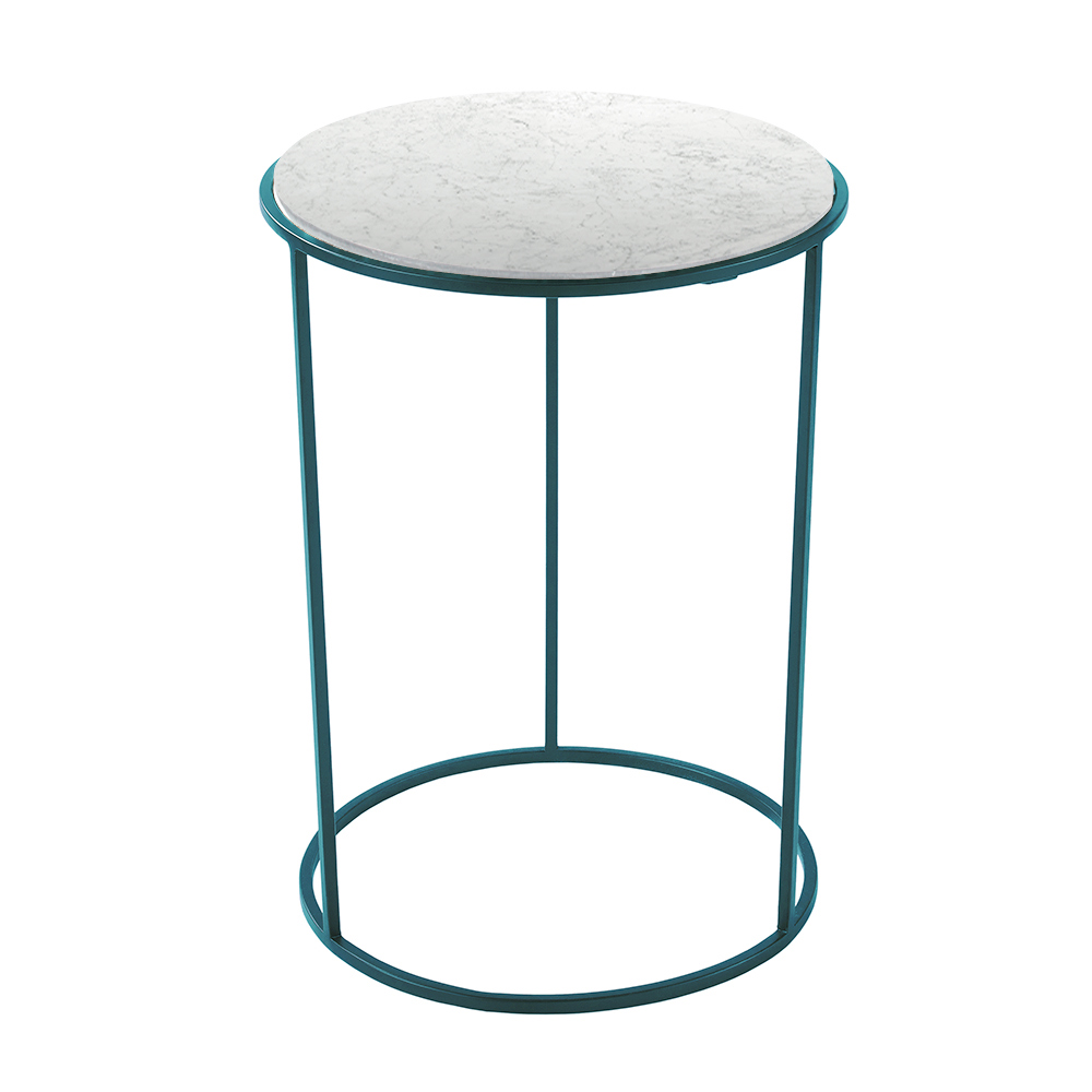 round coffee table with opaque marble top, available in three different variants, has minimal and essential lines. The
