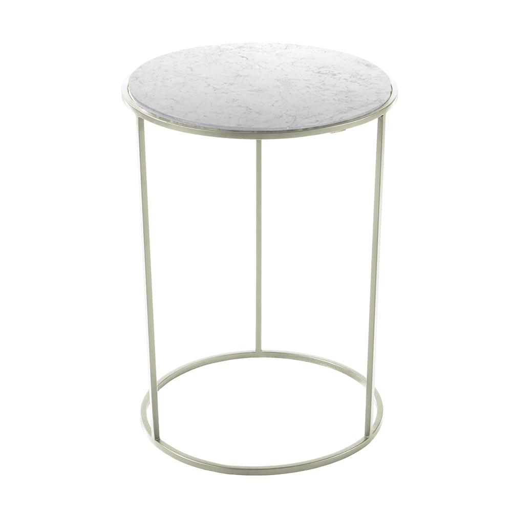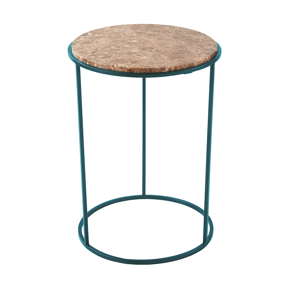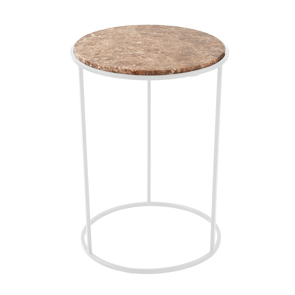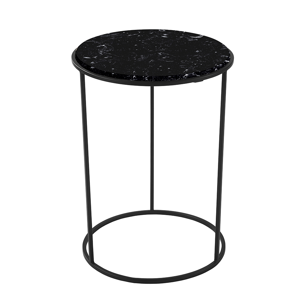 round coffee table with opaque marble top, available in three different variants, has minimal and essential lines. The