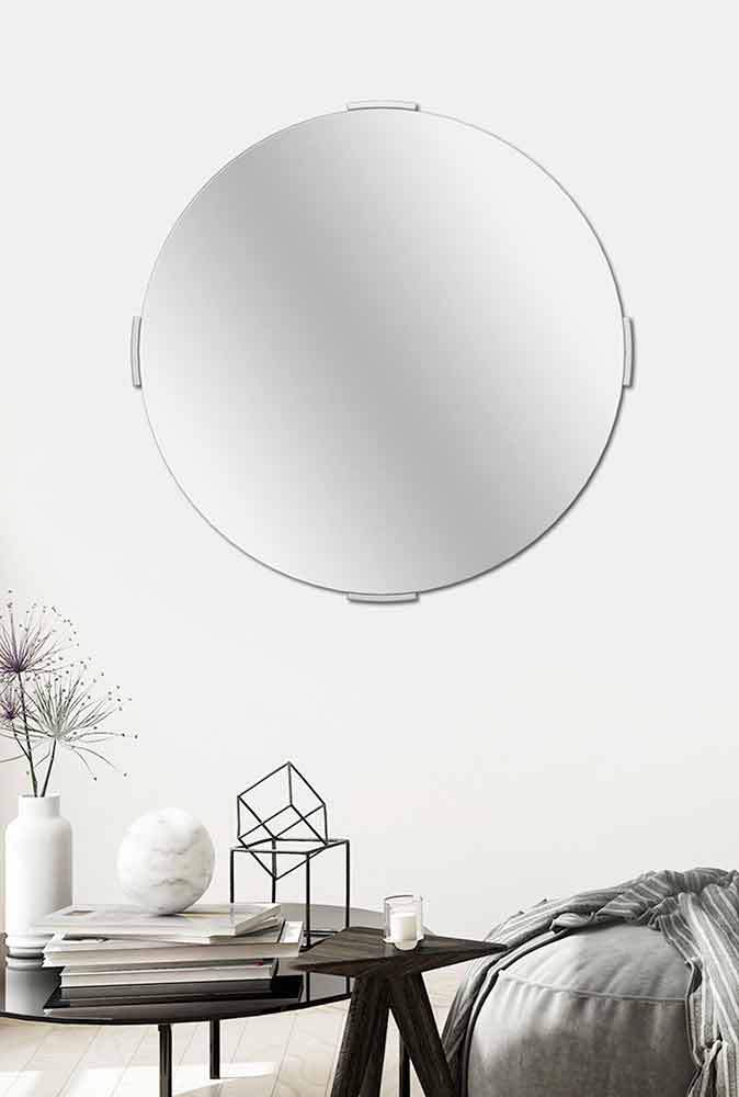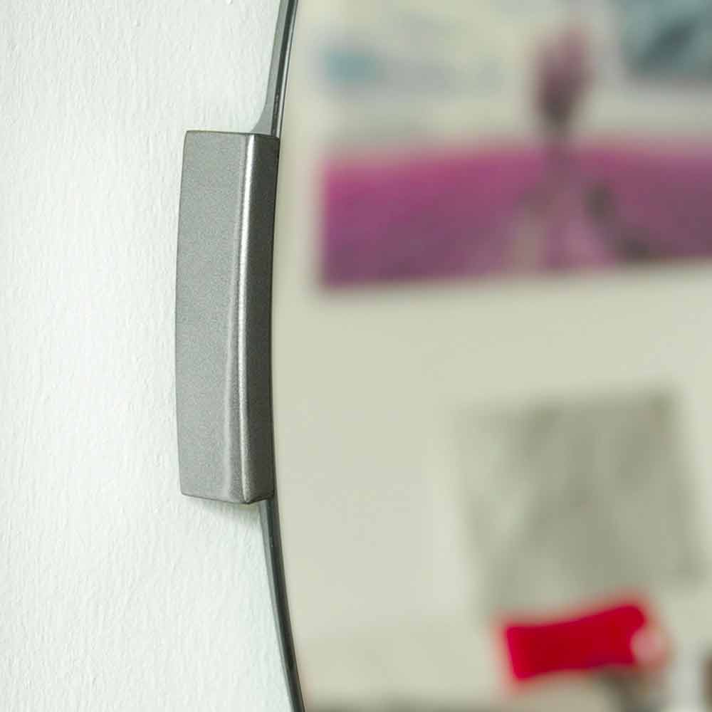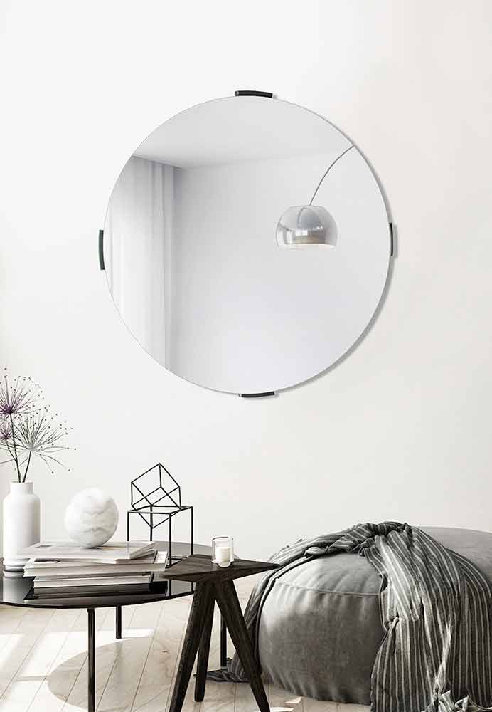 Modern and round cantilever wall mirror of minimal design made in Italy.