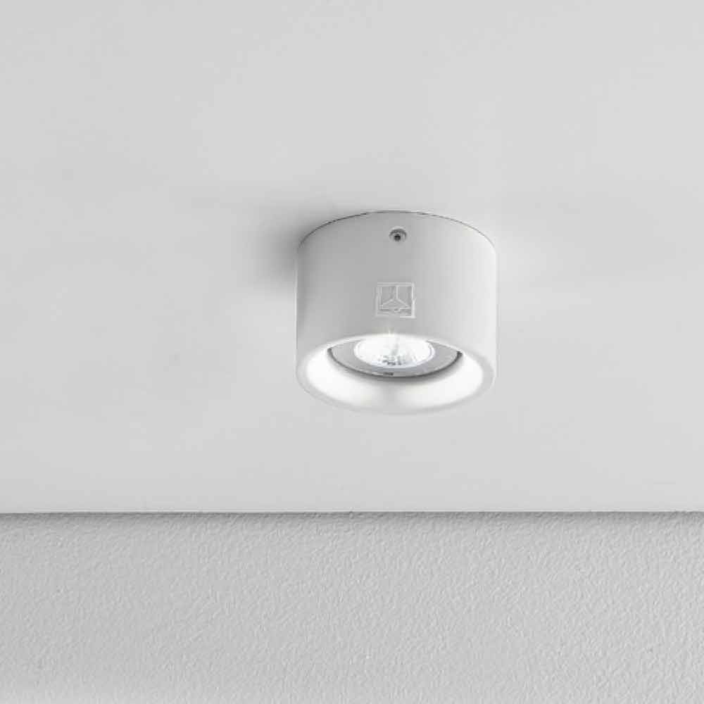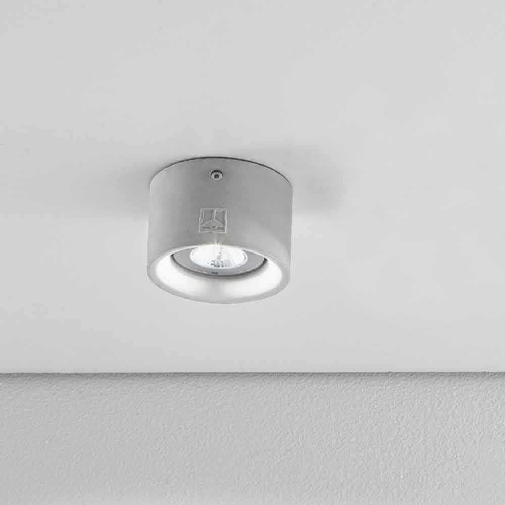 < Modern round shape ceiling lamp Nadir 8 by Aldo Bernardi, available in concrete or plaster version.