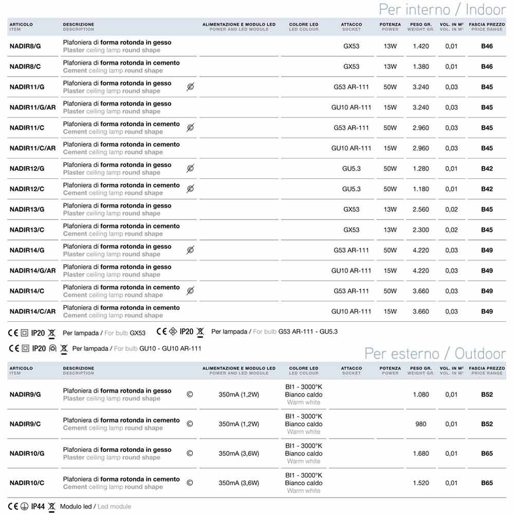 Colacem® line includes pendants, garden poles and a serie of spots of various shapes and sizes. Material used are plaster, concrete or lightweight fiber concrete.