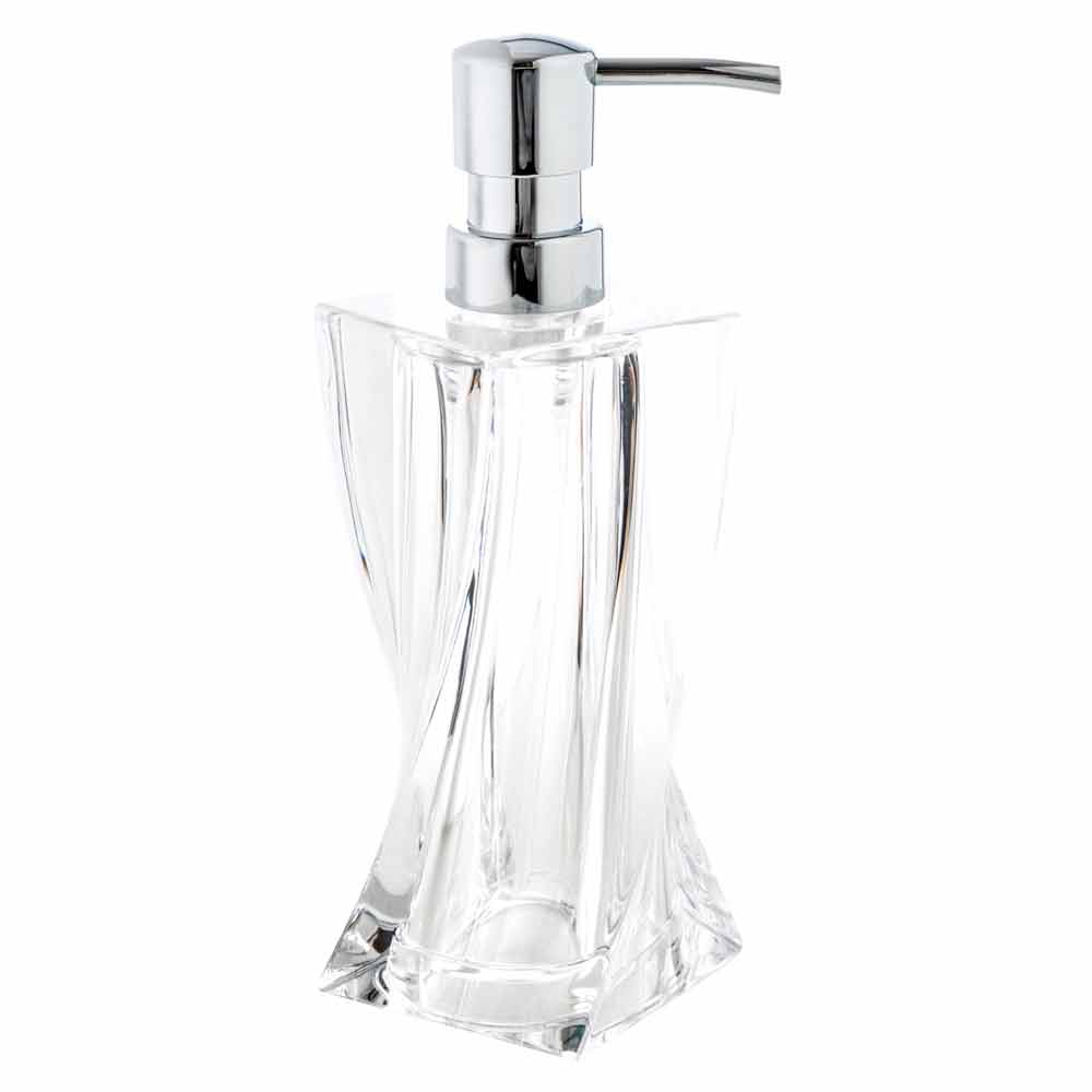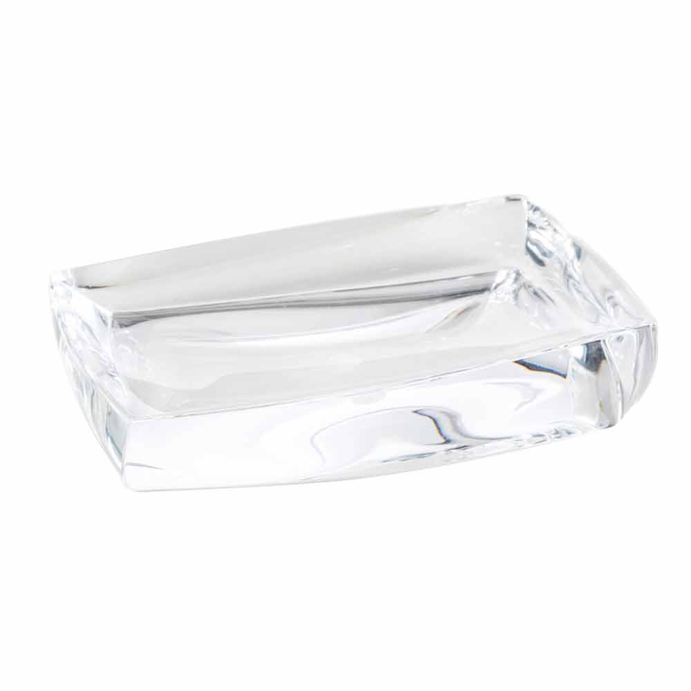 Design bathroom set dispenser + glass + Torraca soap dish Torraca is the practical and functional bathroom set characterized by a modern, precious and elegant design. Made with wavy shapes in acrylic that looks like crystal.
