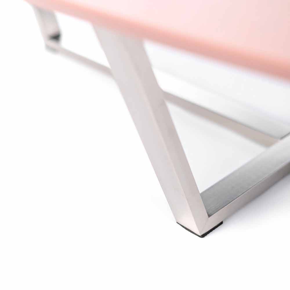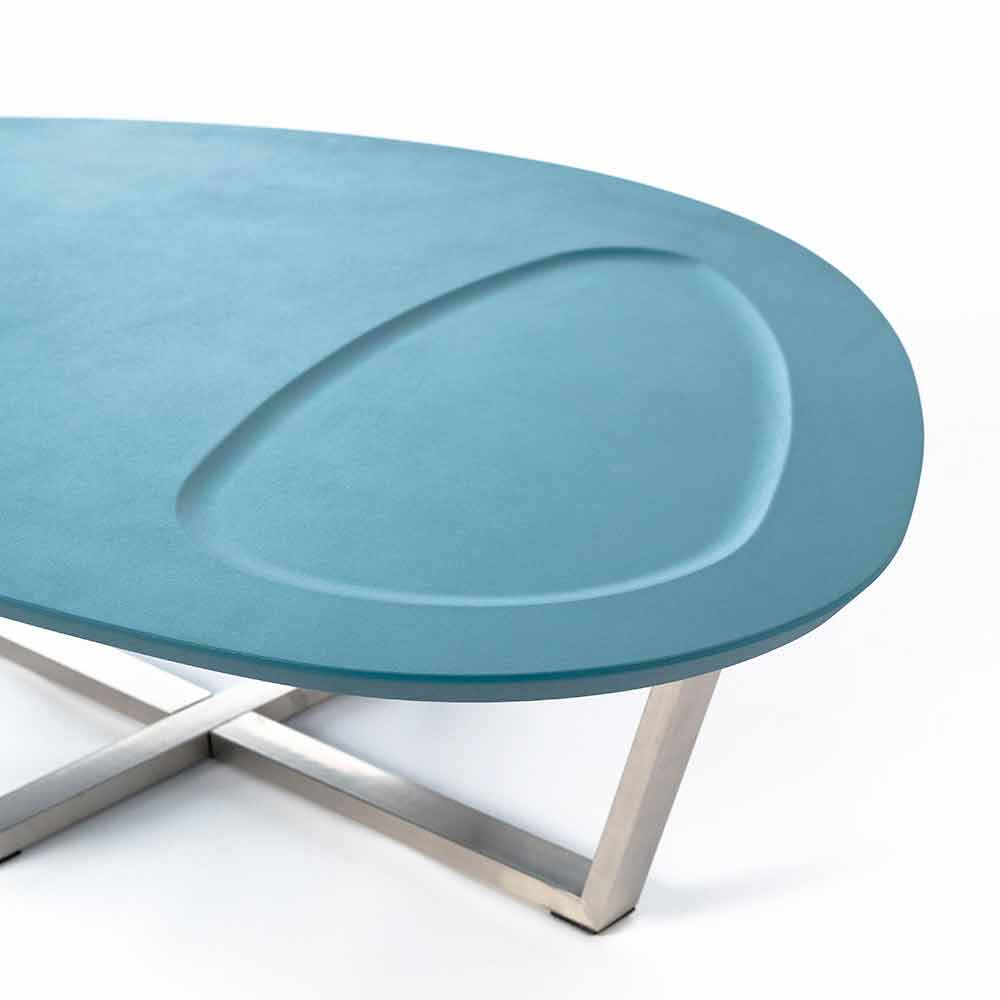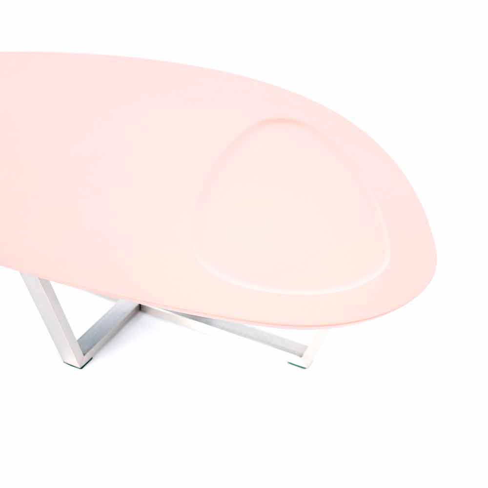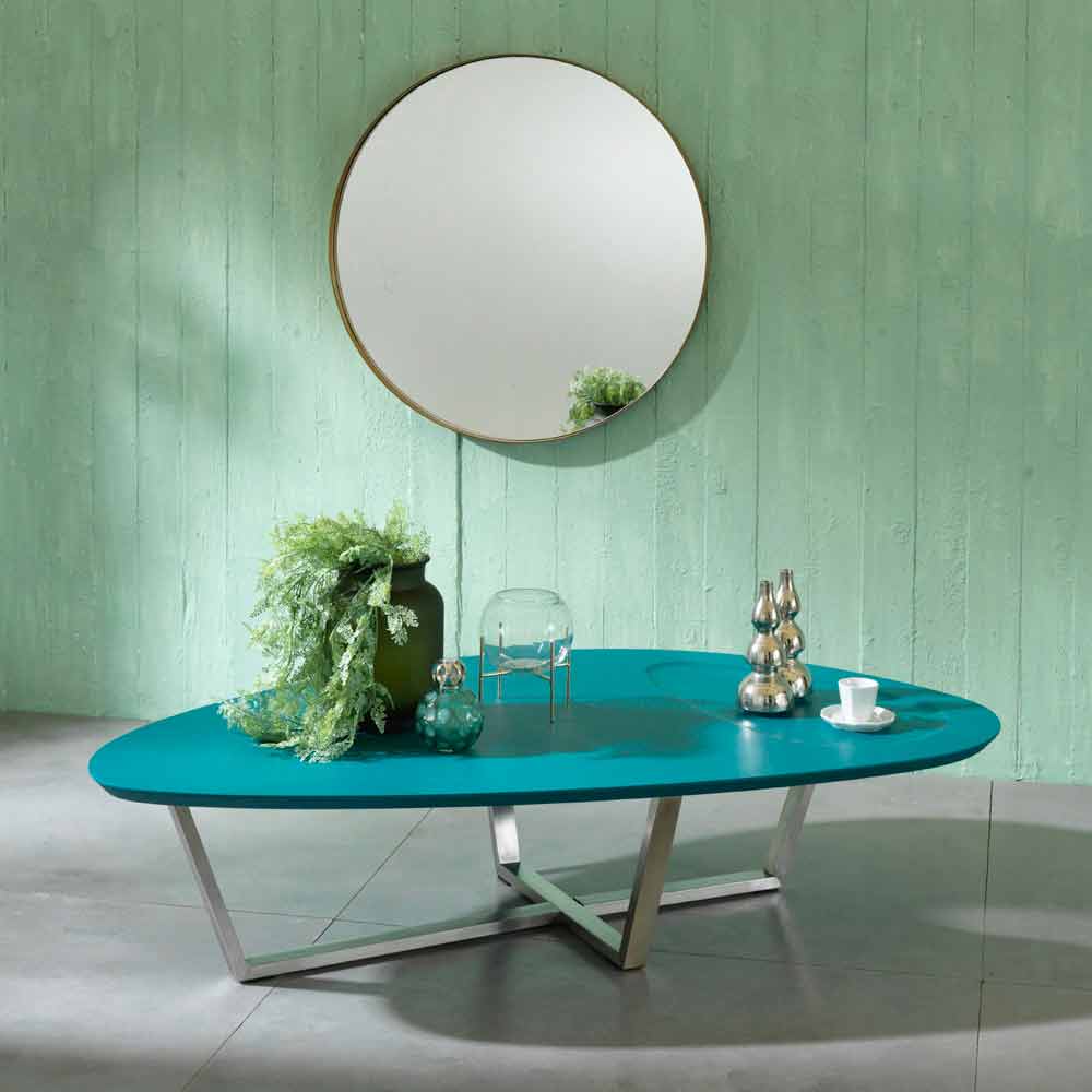 Donatella is a shaped coffee table made with an MDF top and a chromed metal base.